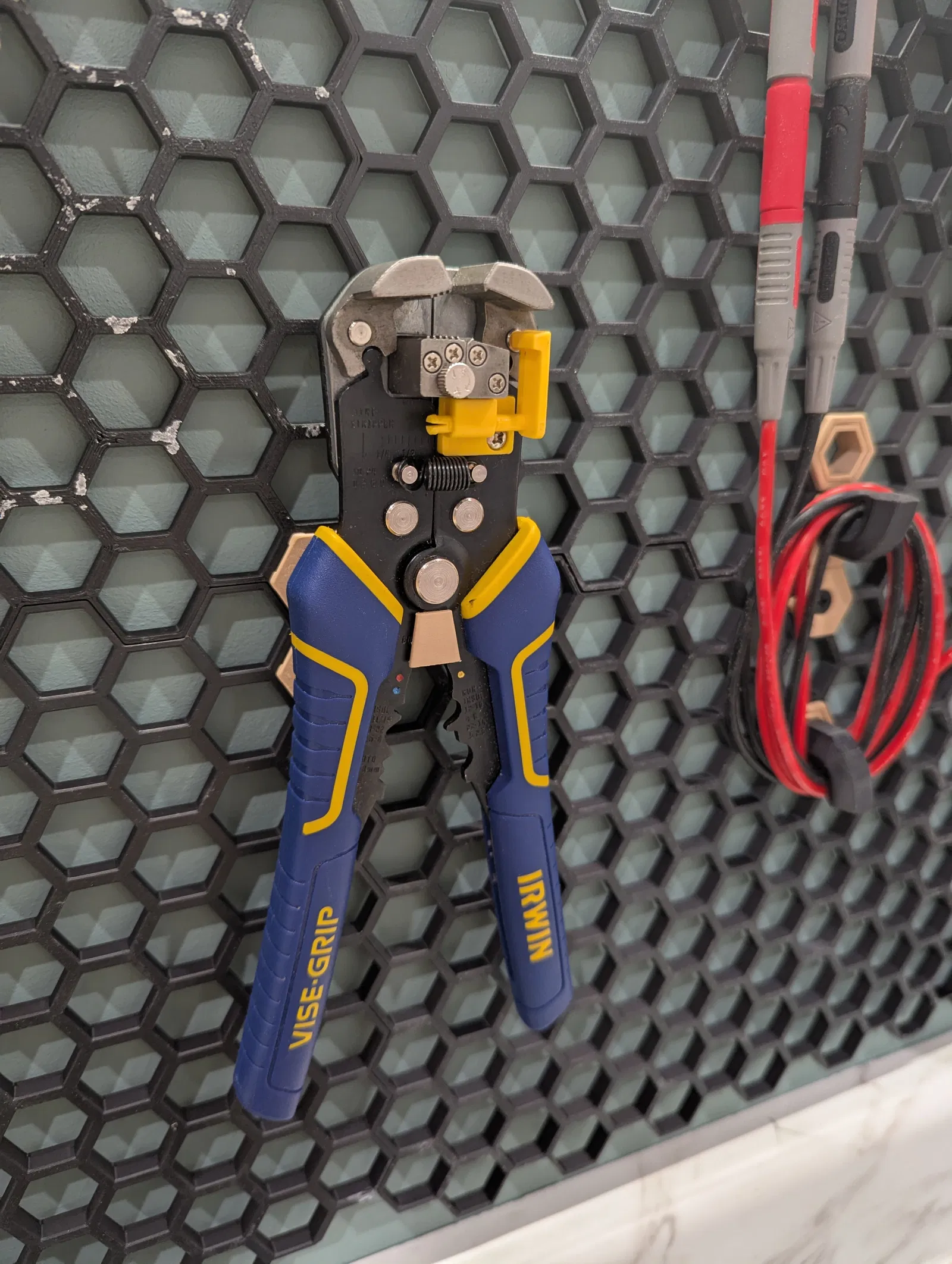 Mẫu thiết kế siêu đơn giản và nhanh gọn để treo kìm tuốt dây điện. Mình không thích mấy mẫu kiểu vòng lặp vì phải cắm ngược dụng cụ vào, làm nó cứ đung đưa không chắc chắn. Mẫu này giữ dụng cụ bằng phần lưỡi cắt, nên bạn lưu ý là theo thời gian phần nhựa in có thể bị mòn một chút. Bù lại, việc lấy ra và gắn vào bảng HSW cực kỳ dễ dàng, ít tốn không gian chiều dọc và thao tác cũng nhanh gọn hơn hẳn.