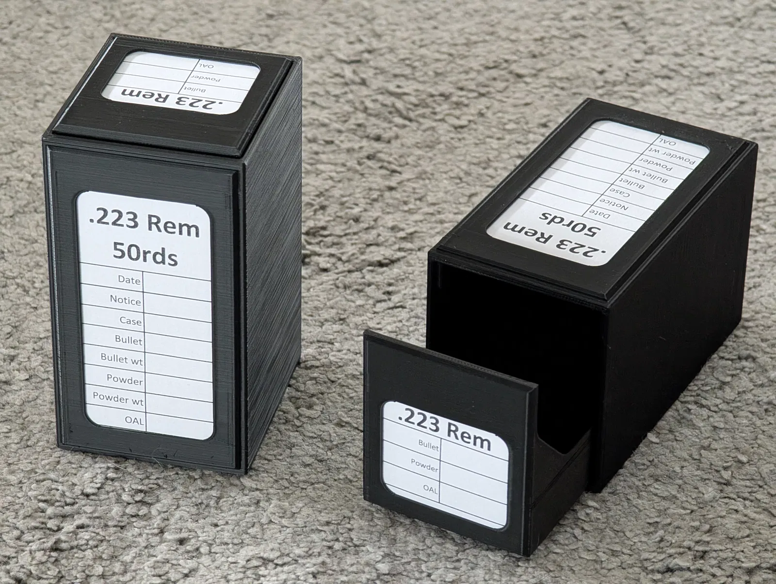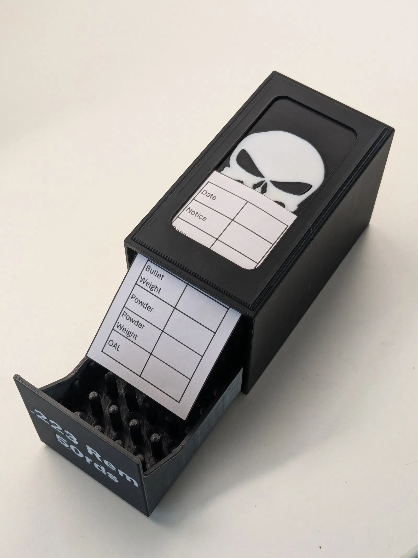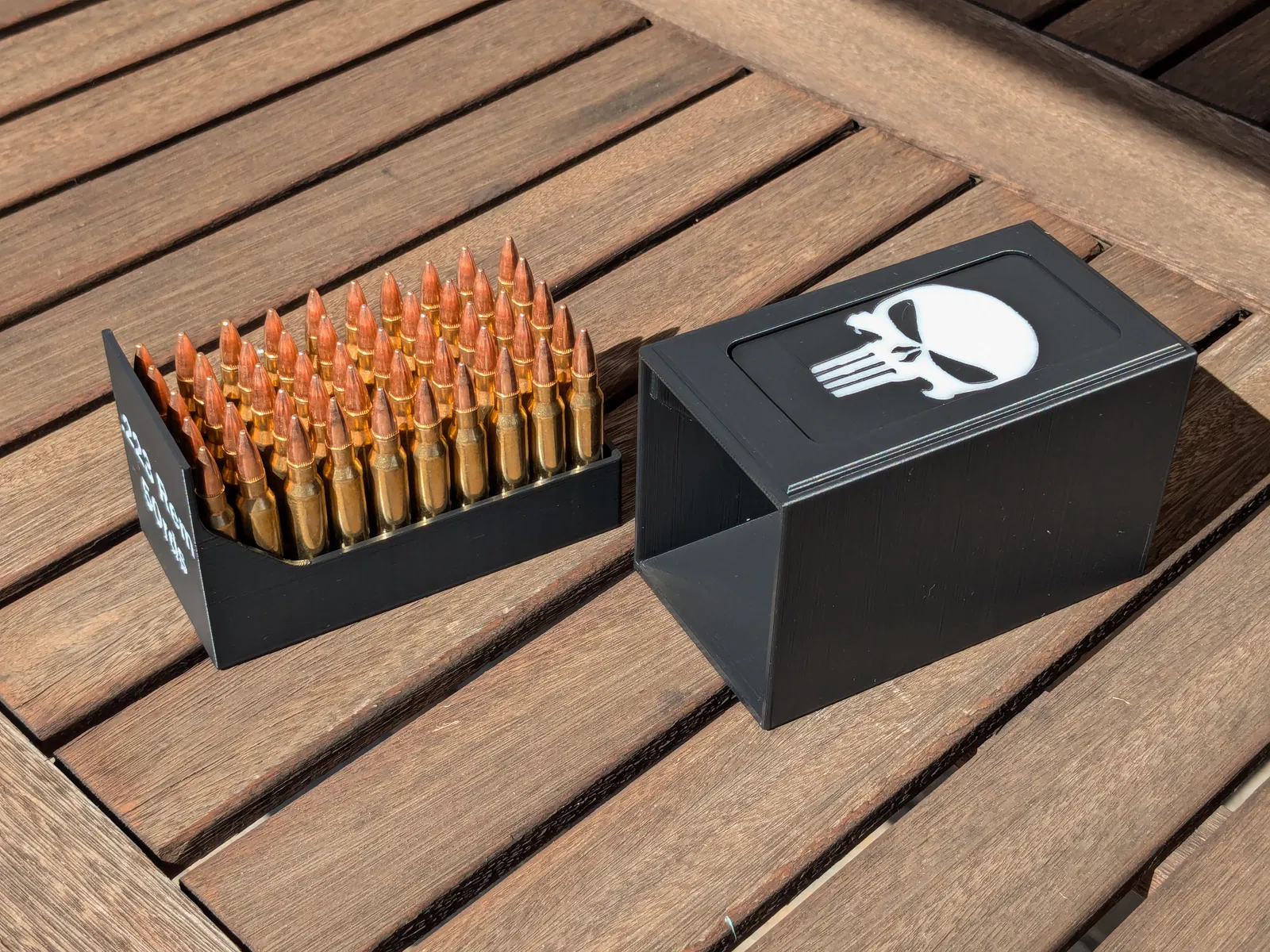 Hộp đựng đạn siêu mỏng dành cho 50 viên .223 / 5.56. Phiên bản V2 được cải tiến cơ chế khóa chắc chắn, có khe dán nhãn mặt trước và cho phép chèn thông tin nạp đạn bên trong một cách tinh tế. Thiết kế xếp chồng tiện lợi.