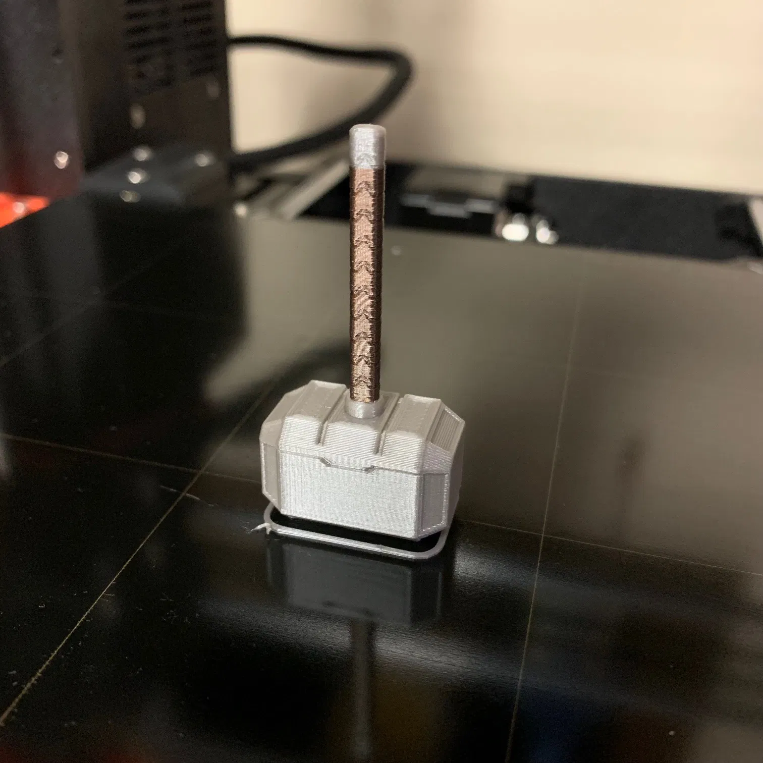 • Thông số in: Nên đặt layer height từ 0.12mm đến 0.16mm để các chi tiết nhỏ ở phần tay cầm và cạnh búa được sắc nét nhất có thể.