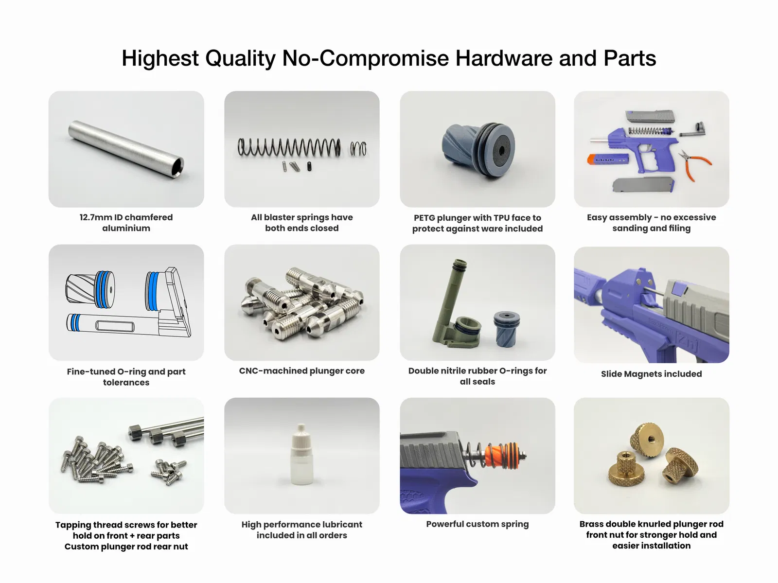 - Bạn sẽ cần một số dụng cụ cơ bản để lắp ráp và keo dán nếu muốn gắn nam châm (không bắt buộc). Mỡ bôi trơn đã có sẵn trong bộ hardware kit.