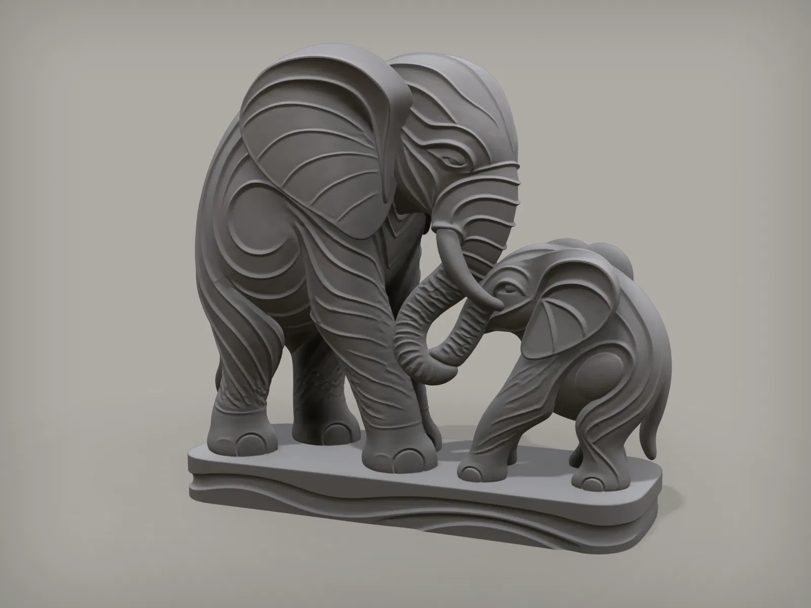 Mẫu in 3D tượng đôi voi nghệ thuật trang trí độc đáo