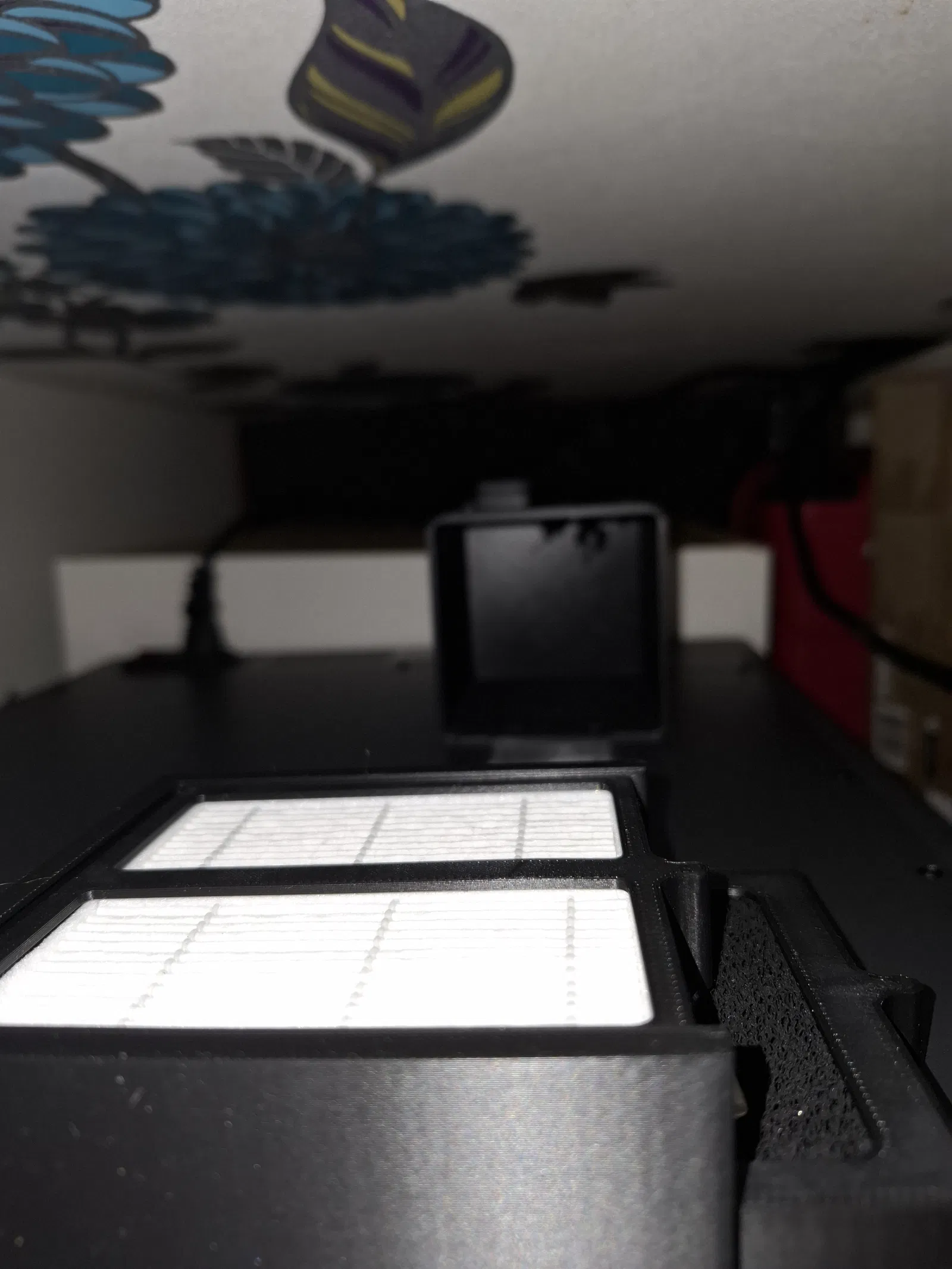 - Khung/khay gắn được làm cao hơn để vừa với tấm lọc than hoạt tính dày 0.5cm (5mm) đặt phía sau màng lọc Hepa. Để in phiên bản này, bạn hãy tải về tất cả các file có chứa tên “remix 2”.