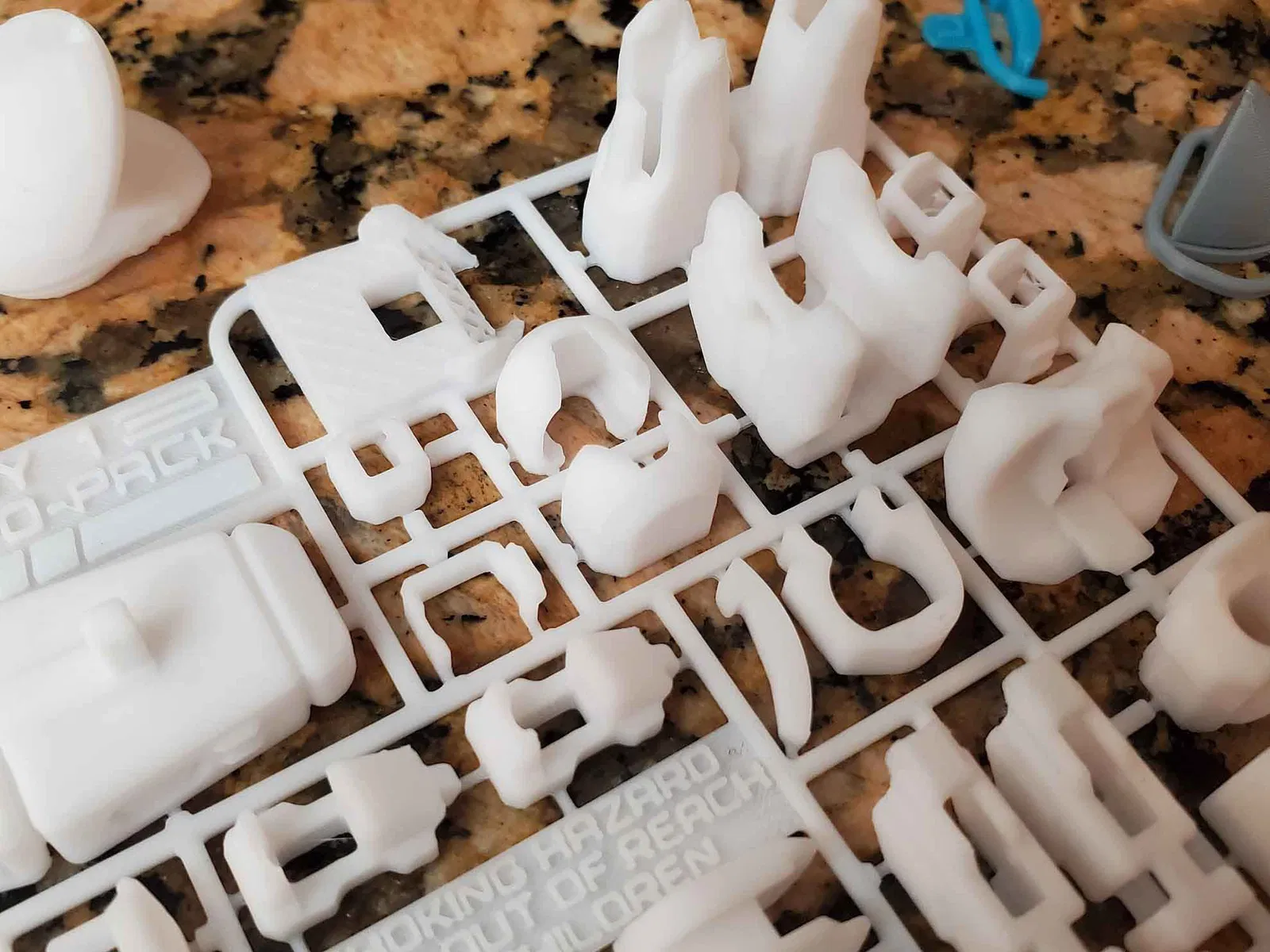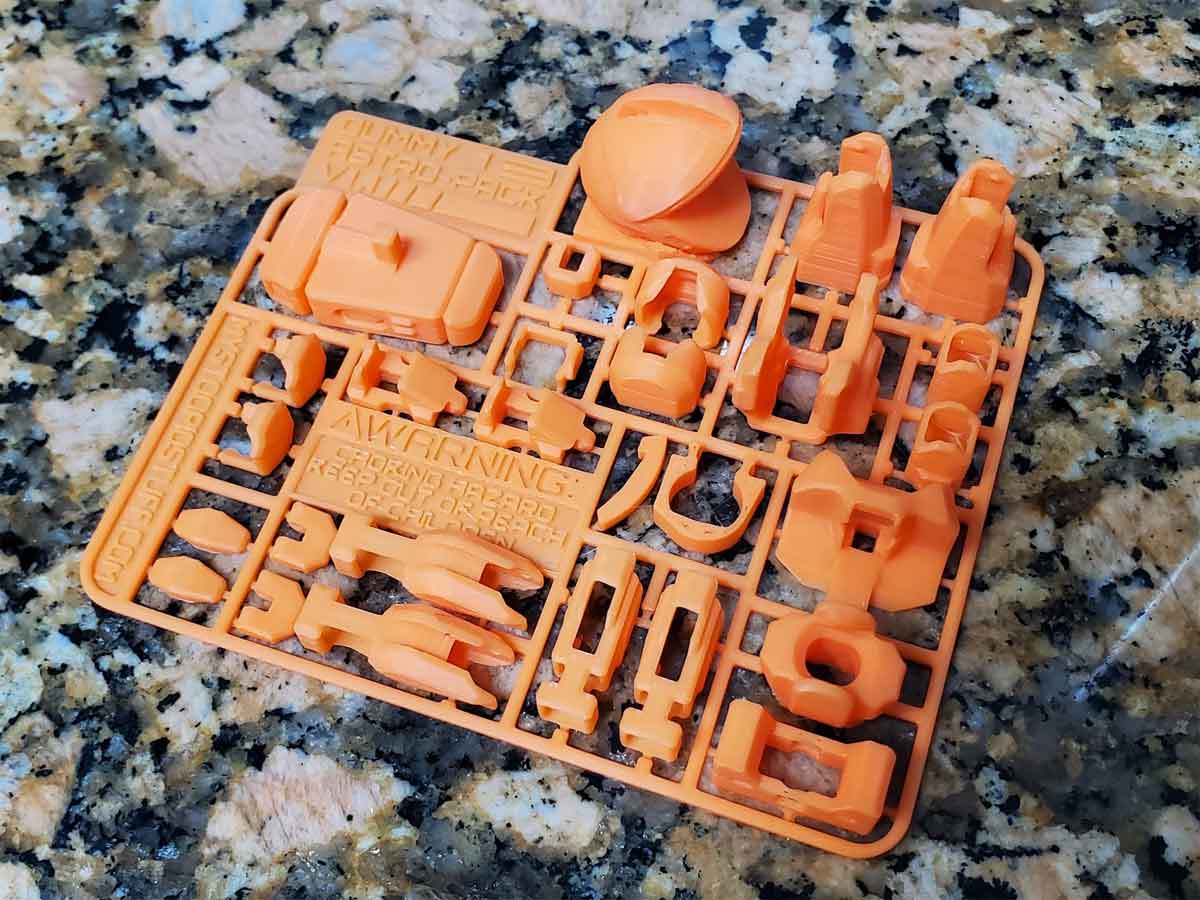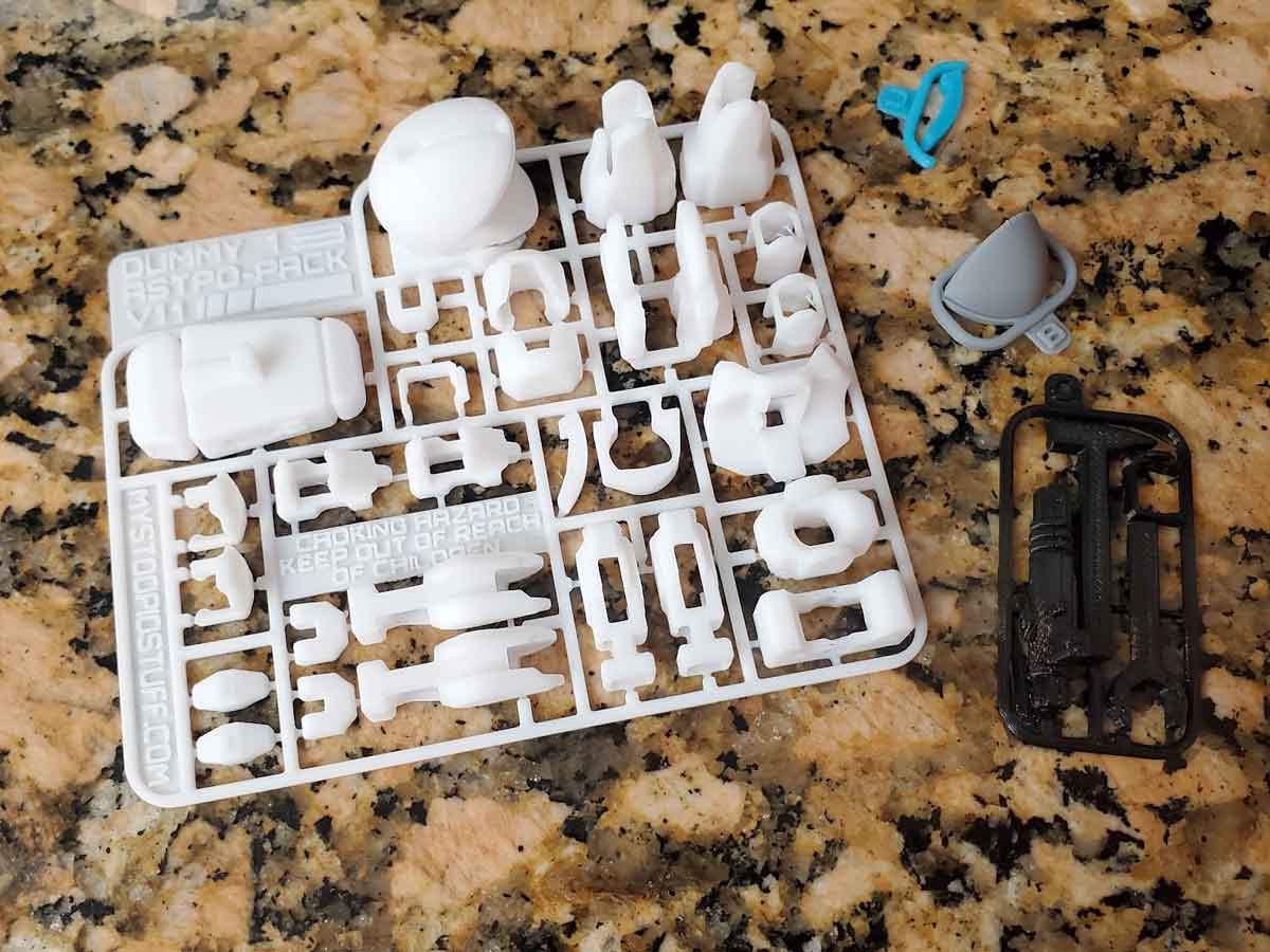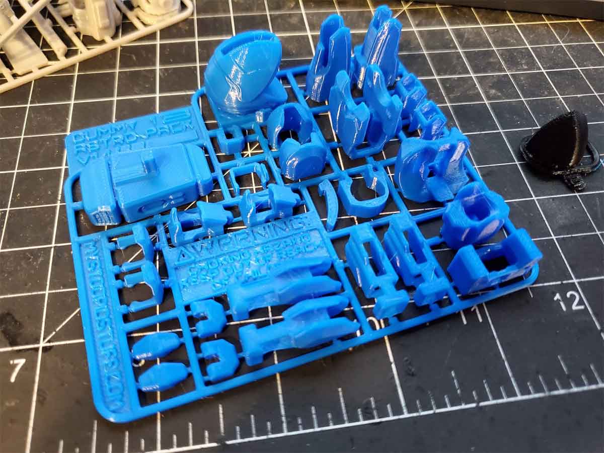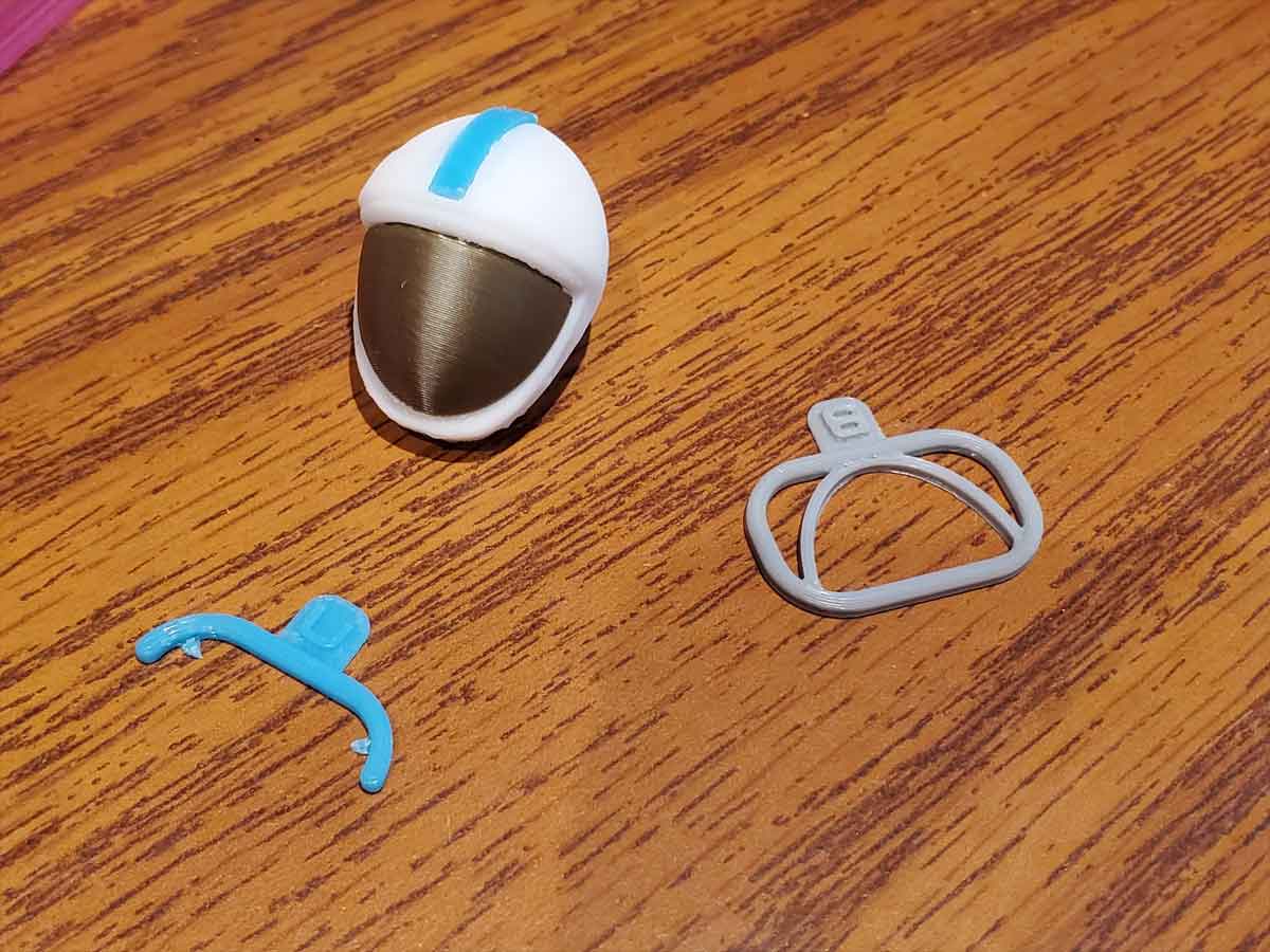 Các bộ phận ở đây được thiết kế cho máy in đơn màu thông thường. Cần sử dụng hỗ trợ (supports) cho mũ bảo hiểm và kính che mặt, nhưng các bộ phận khác có thể in mà không cần hỗ trợ. Tốt nhất nên sử dụng chiều cao lớp in thích ứng (adaptive/smooth layer height) cho mũ và kính, với chiều cao lớp cơ sở là 0.2mm. Việc dùng adaptive layer là tùy chọn, nhưng sẽ giúp mô hình trông đẹp hơn.