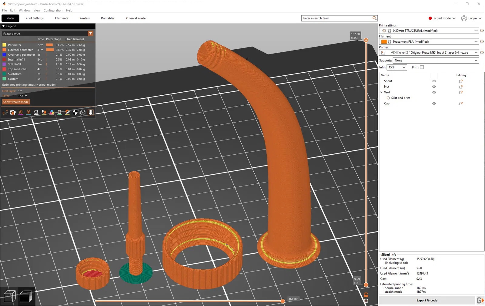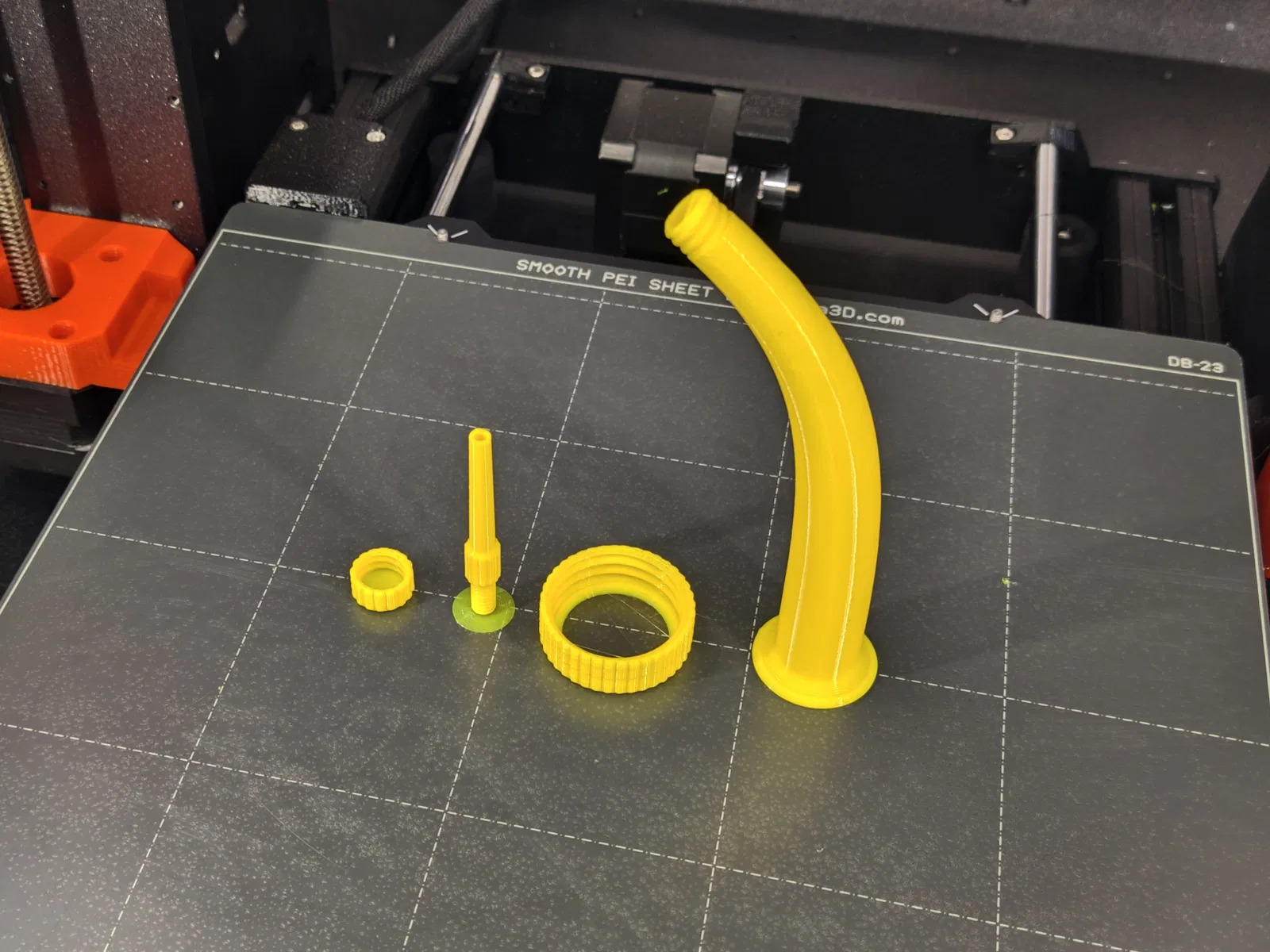 Đầu vòi được đai ốc siết đủ chặt để đảm bảo không bị rò rỉ nước. Nắp đậy có thể hơi khó vặn lúc đầu do cấu trúc in chéo, nhưng nếu bạn dùng kìm vặn ra vào vài lần thì ren sẽ trơn tru hơn nhiều! Hiện tại nó chưa hoàn toàn kín nếu bạn dốc ngược chai, nhưng tôi đang tìm giải pháp khắc phục.