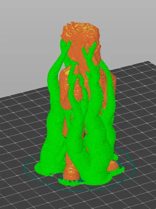 • Hỗ trợ (Support): Như hình minh họa, mẫu này cần thiết lập support (cấu trúc hỗ trợ) kỹ lưỡng ở các phần tay, áo khoác và tóc để đảm bảo không bị lỗi in hụt.