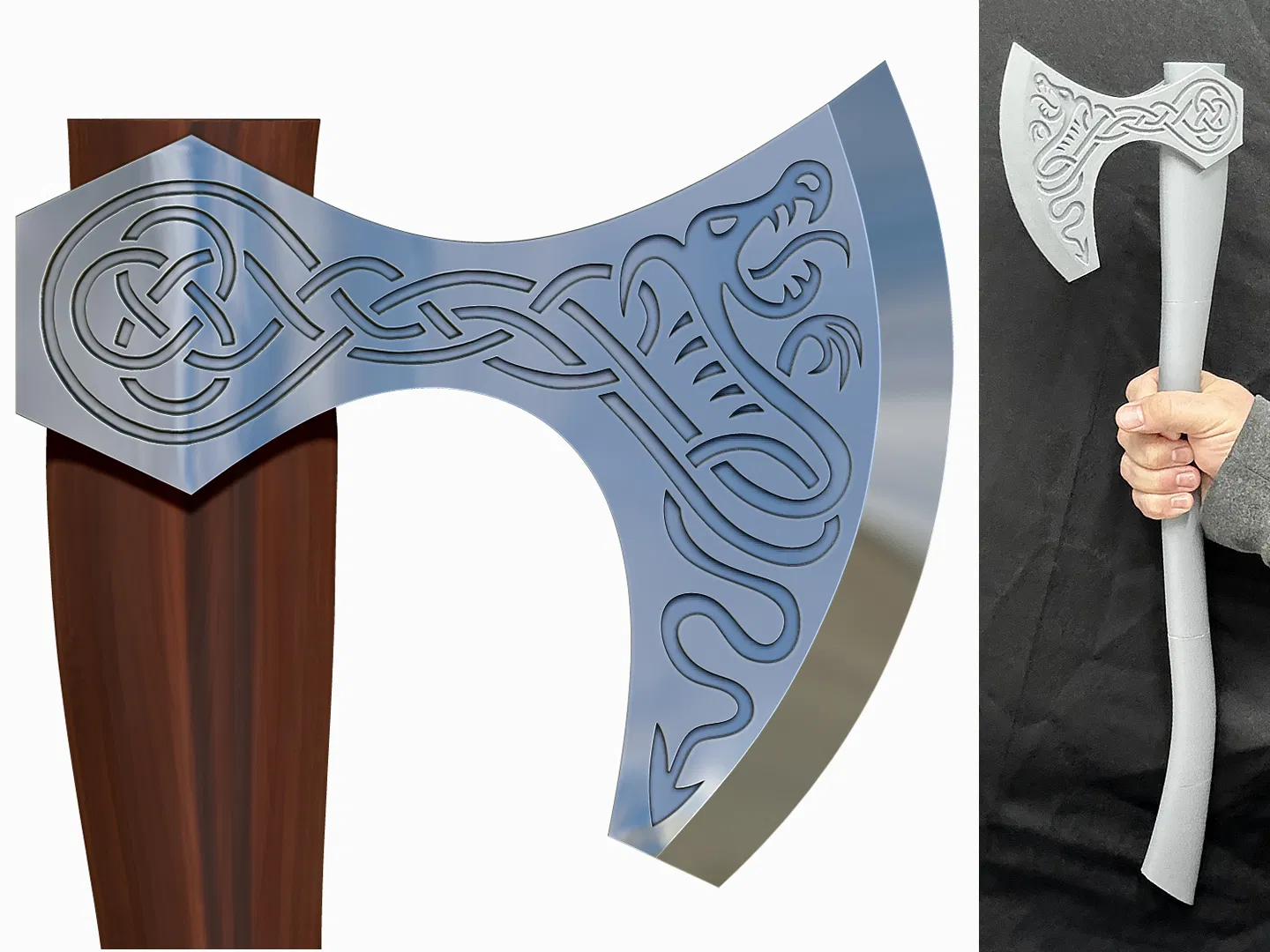 Mang sức mạnh của người Bắc Âu vào xưởng in của bạn với mô hình Rìu Viking kích thước thật này. Đạo cụ in 3D chi tiết này rất lý tưởng cho cosplay, LARP, trang trí theo chủ đề hoặc chụp ảnh giả tưởng. Được thiết kế để in và lắp ráp đơn giản, mô hình có các chi tiết chạm khắc lấy cảm hứng từ rồng Celtic.