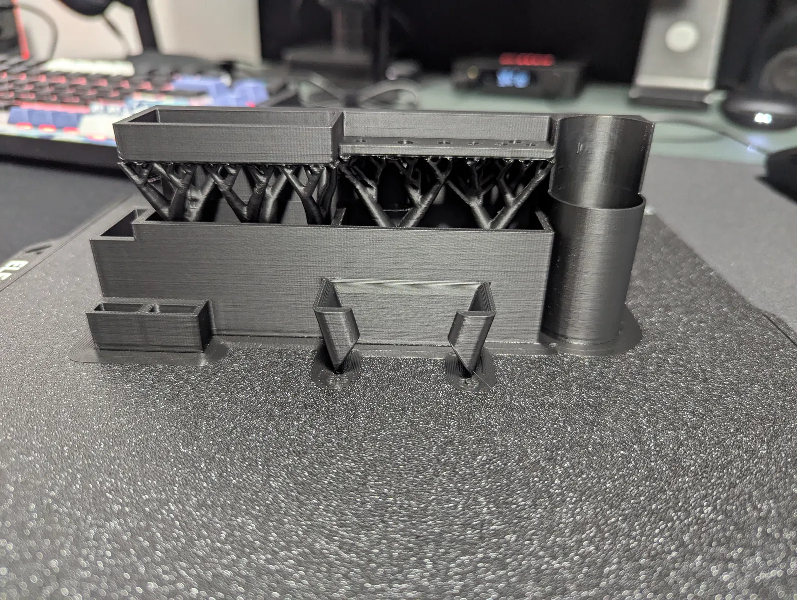 Để có kết quả in tốt nhất, bạn nên dùng support và brim. Ngoài ra, nhiệt độ buồng in nên duy trì từ 30 đến 38,5 độ C để đạt chất lượng tối ưu. Mình thường sử dụng tính năng auto tree supports và đặt hướng in mặt sau của mô hình từ trái sang phải để tiết kiệm nhựa in.