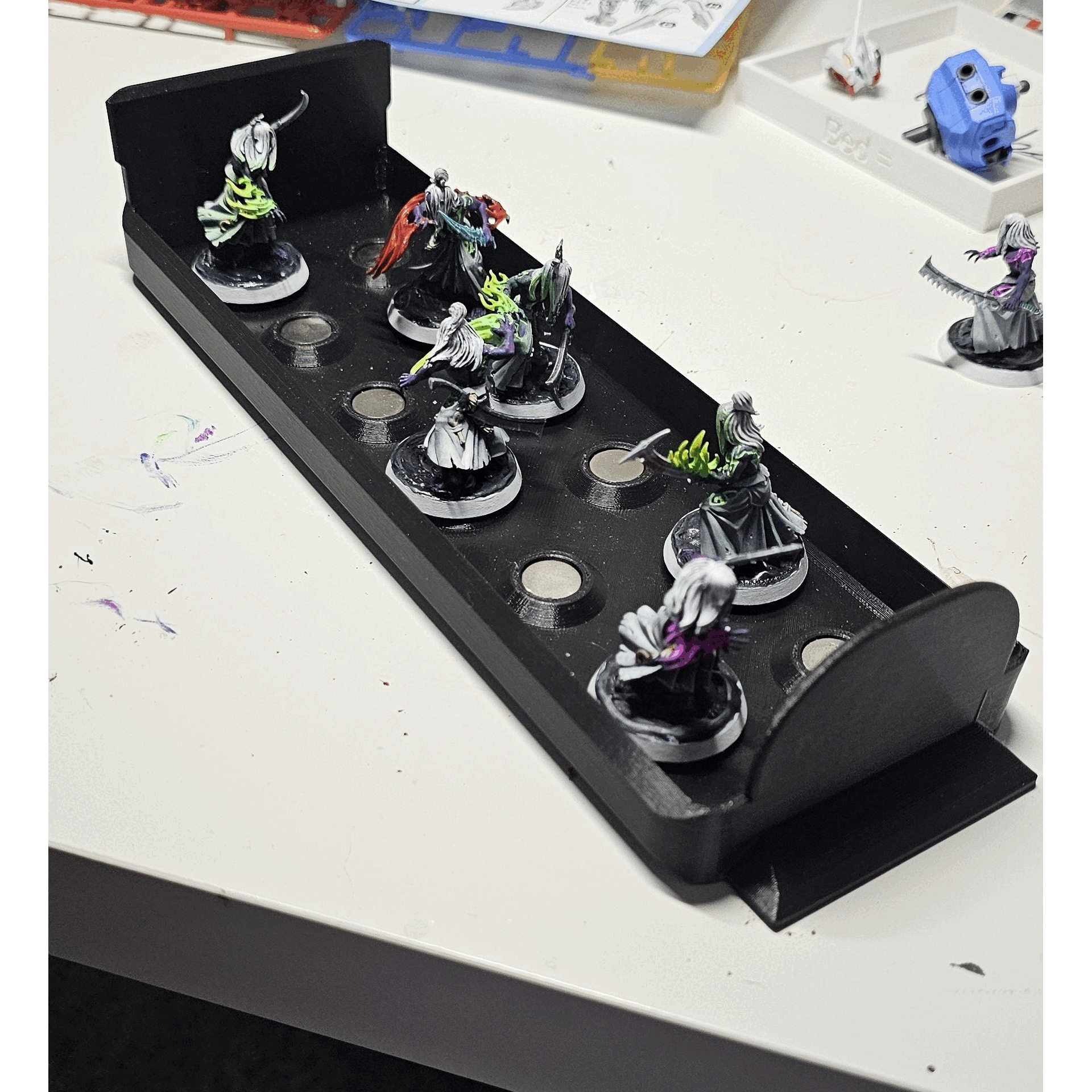 Khay này chứa được tối đa 12 mô hình sử dụng nam châm tròn 12x3mm. Dùng cho các mô hình có đế lên đến 32mm. Tôi cũng đã tạo thêm biến thể khay mô hình 40mmx6, cùng các tùy chọn 2-slot và 3-slot tùy theo chiều cao mô hình.