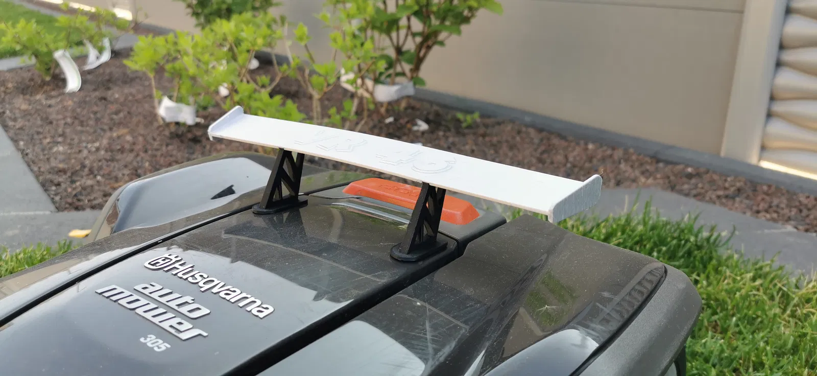 Con Automower của mình hồi nào tới giờ vẫn thiếu một chút lực ép xuống bánh sau, nên mình đã thiết kế cái cánh gió này. Nó lắp vừa khít lên nắp máy mà không hề gây cản trở gì khi bạn cần bảo trì hay sửa chữa.