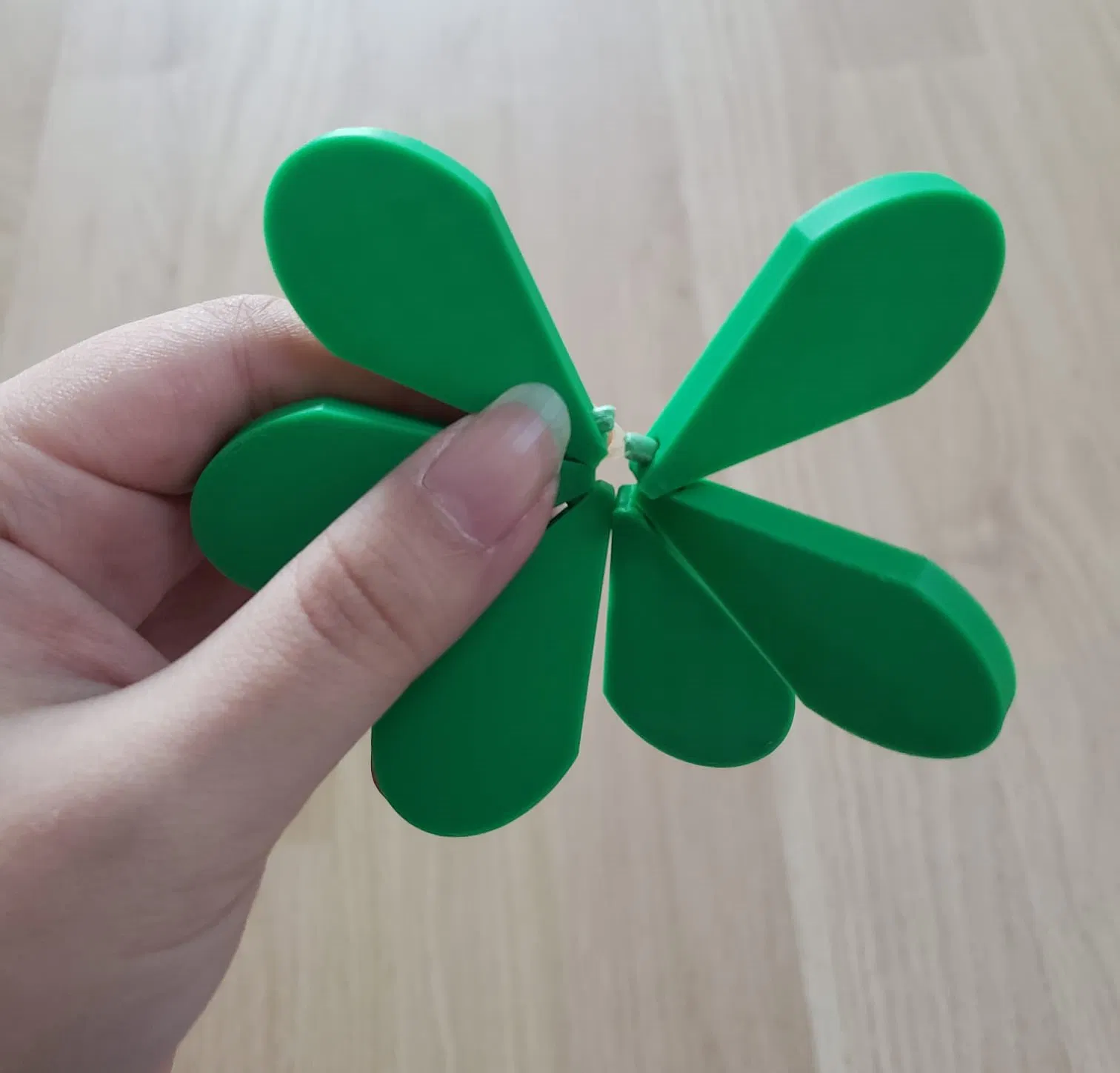 Khi đặt các lá vào phần thân, hãy đảm bảo chúng nằm phẳng (song song với mặt đất).
