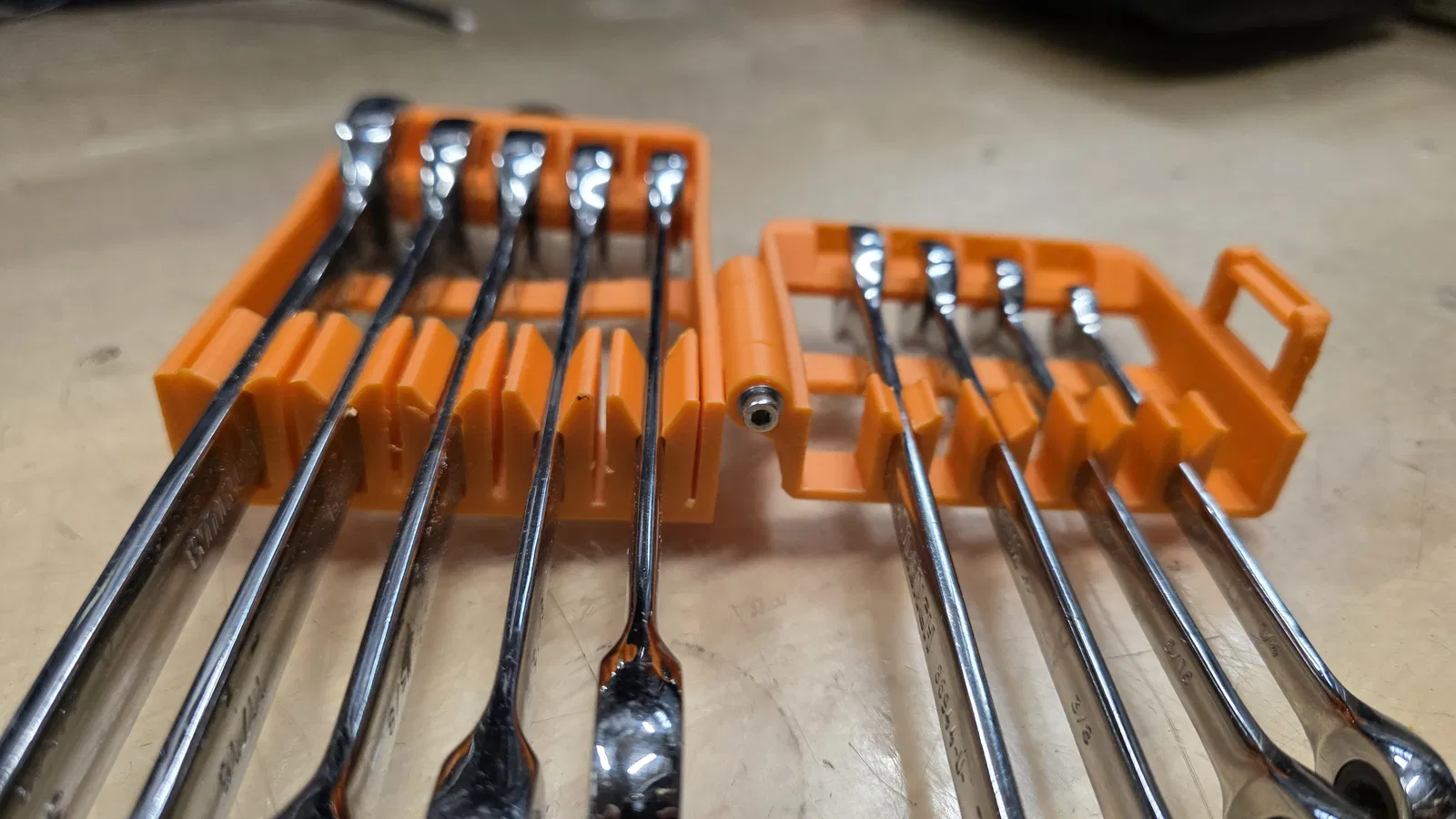 Đây là giá treo cho 9 chiếc cờ lê, dựa trên một bộ dụng cụ Stanley mà mình rất ưng ý. Sản phẩm tương thích với cả hệ mét hoặc SAE, loại cờ lê bánh cóc (rachet) hay loại tiêu chuẩn đều dùng được.