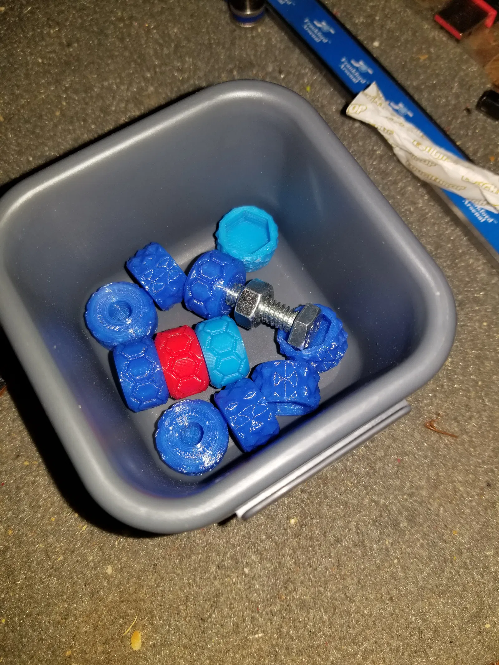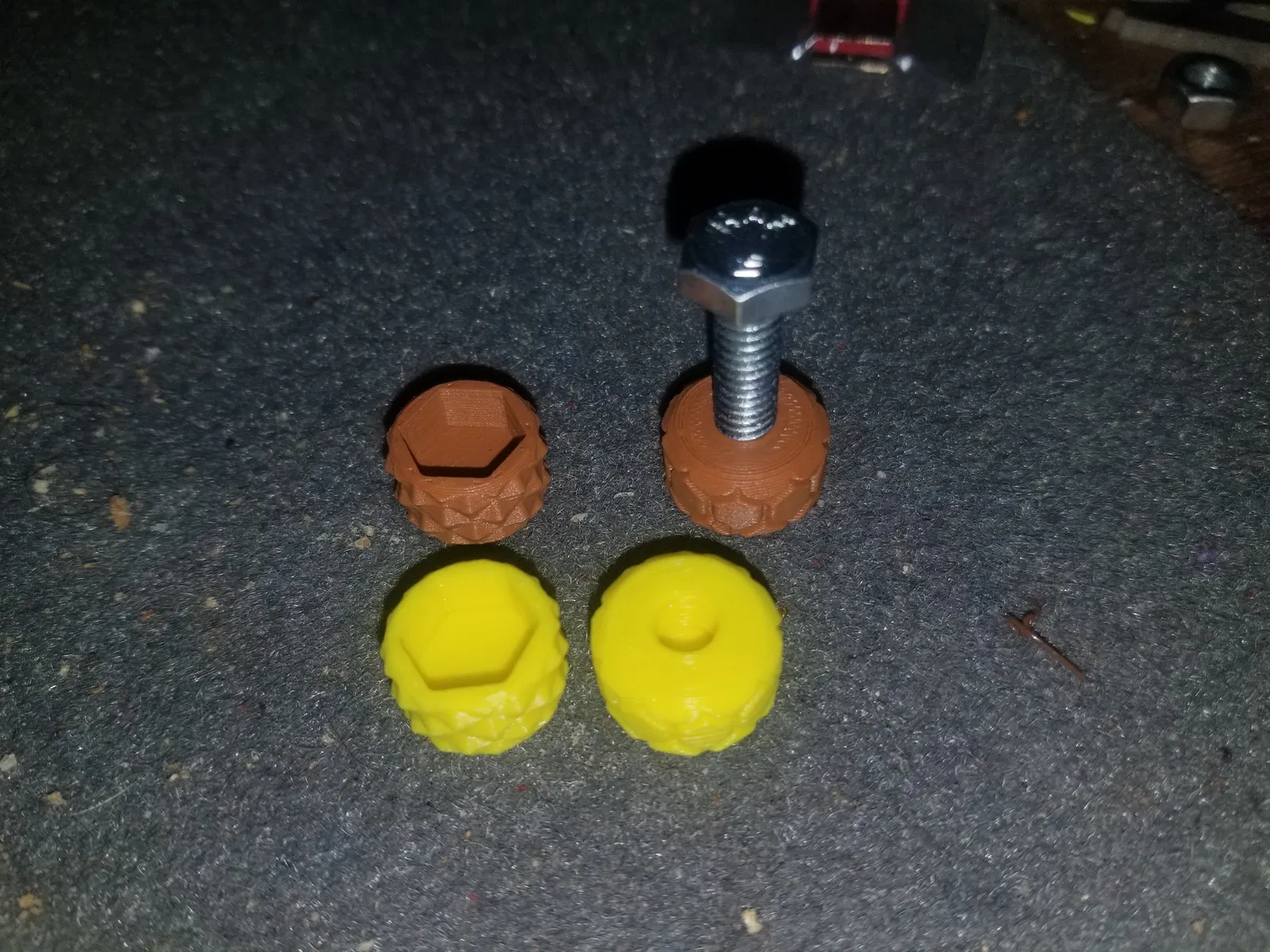 Mình đang in các mẫu này trực tiếp, không dùng brim, bằng nhựa PLA hoặc PETG, với độ phân giải lớp in từ 0.2 đến 0.25mm, tất cả đều cho ra độ chi tiết rất tốt cho phần ren. Độ vừa vặn, ít nhất là với phần cứng ¼-20 (mình không có sẵn loại khác để thử), là rất chuẩn, gần như giống hệt với đai ốc và bu lông mua ở cửa hàng, có thể chặt hơn một chút nhưng không hề bị “kẹt”. Tất nhiên là bạn hoàn toàn có thể điều chỉnh điều đó trong phần customizer. :-)