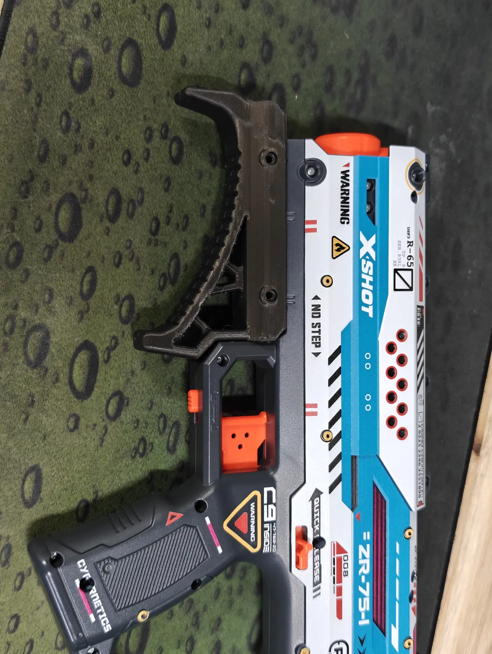 Đây là mẫu tay cầm phía trước (fore grip) dành cho XShot Fury X. Do mình có bàn tay khá to nên các lựa chọn khác hoặc là không dùng được, hoặc là quá nhỏ, hay bị vướng vào nút an toàn. Mẫu tay cầm này được thiết kế dài hơn và nhô ra phía trước blaster một chút. Nó rất hợp để kết hợp với bản mod ray picatinny có sẵn trên đây.