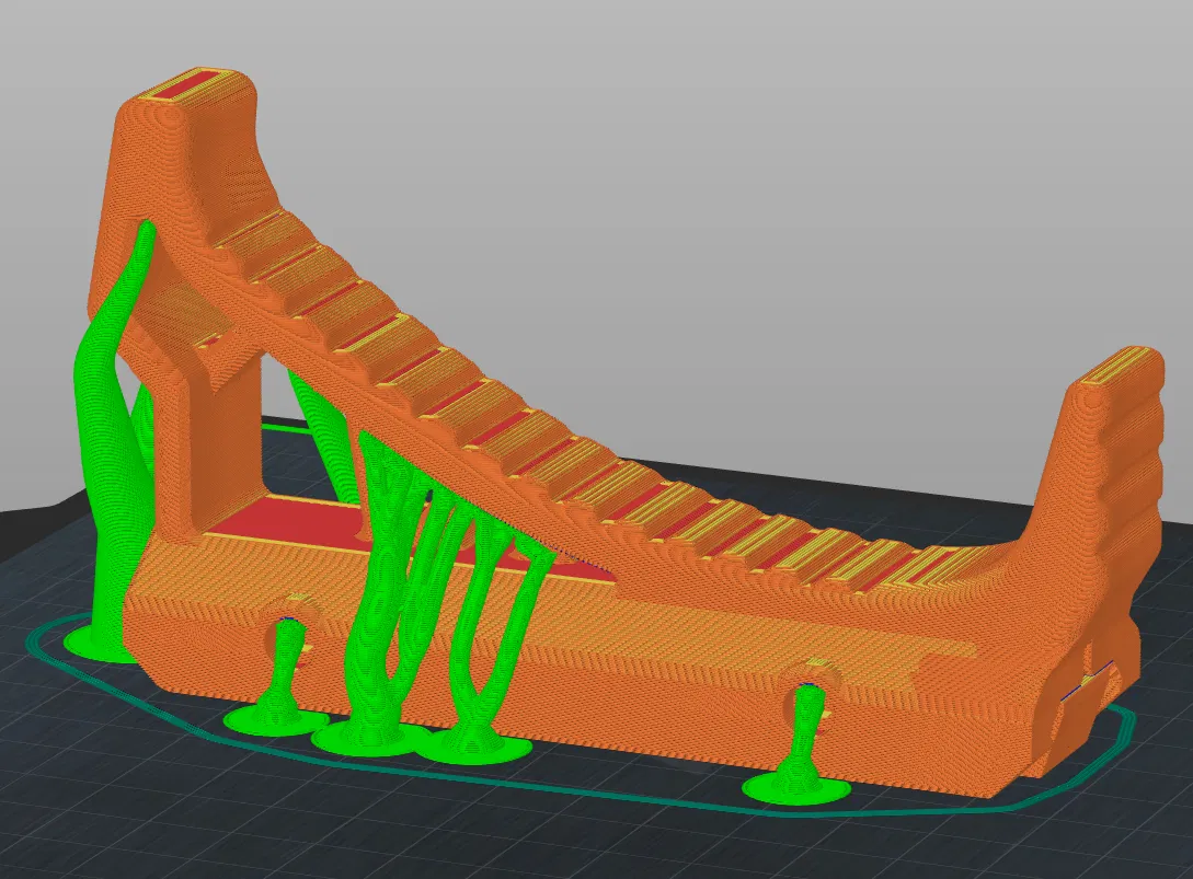 Mẫu này có sẵn phần support tích hợp ở đế, nhưng mình khuyên bạn nên dùng organic supports (support hữu cơ) chạm vào bàn in khi cắt file (slicing), vì một số phần overhang khá dốc. Bạn có thể in bằng bất kỳ chất liệu nào tùy thích. PLA là ổn, PETG cũng rất tốt. Còn nếu muốn bền bỉ hơn dưới ánh nắng mặt trời thì nên dùng ASA.
