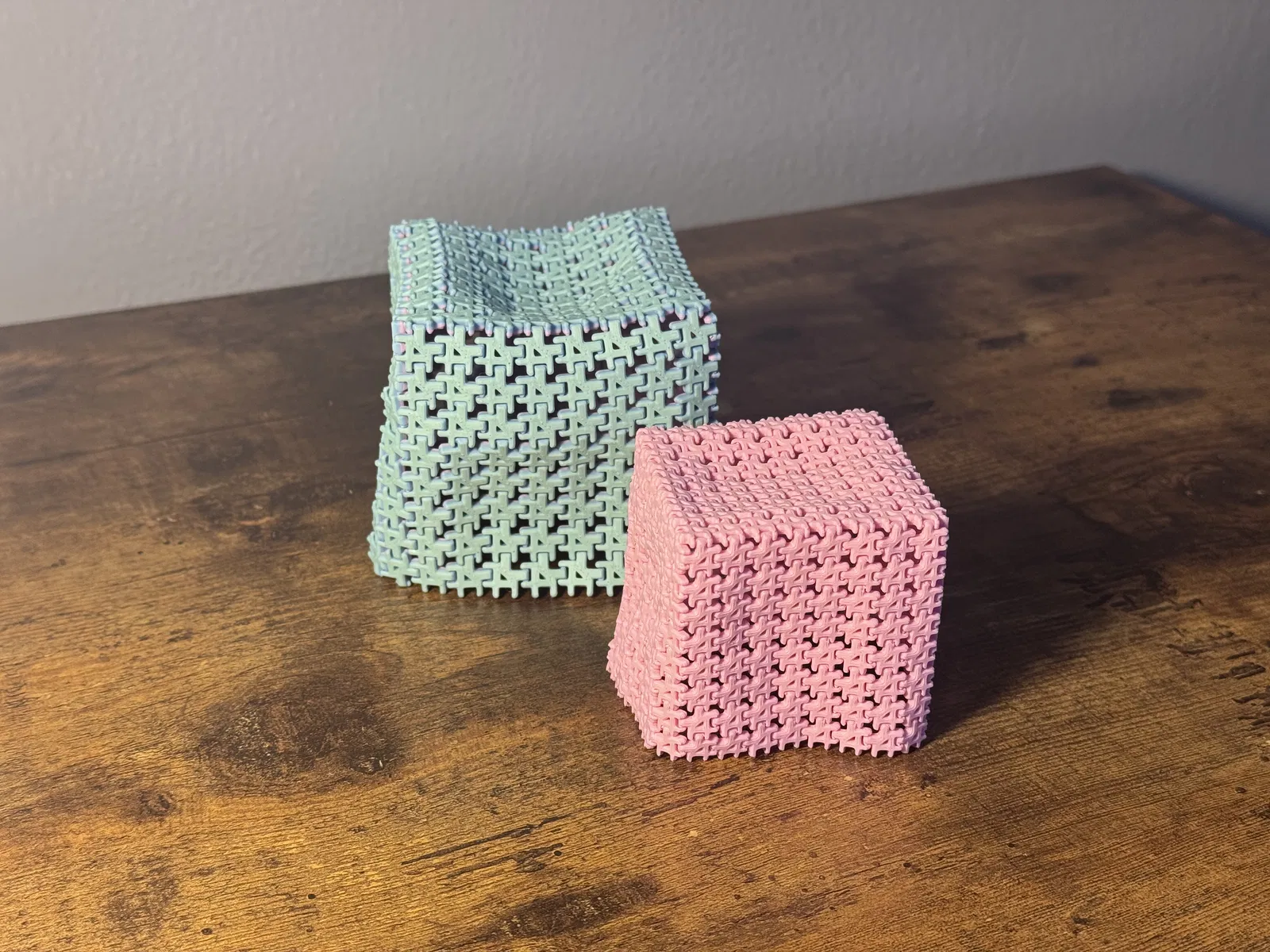 Liệu cái này có thực tế, hữu dụng hay giúp ích gì cho nhân loại không nhỉ? Có lẽ là không, nhưng cảm giác khi in ra thì cực kỳ đã.. Xin giới thiệu Soft Box! Chất liệu vải 3D Printable của tôi có một siêu năng lực bí mật, đó là có thể lắp ráp thành các vật thể 3D! Tại sao phải in một chiếc hộp cứng ngắc thông thường khi bạn có thể in một chiếc hộp mềm dẻo? Chỉ cần in file ra bằng PLA hoặc bất kỳ nhựa nào bạn thích. PETG hoạt động đặc biệt hiệu quả. Sau đó, hãy bấm bốn góc lại với nhau. Cách dễ nhất là bắt đầu từ phía bên trong góc rồi hướng ra ngoài. Bạn có thể phóng to lên đến 200% trước khi việc liên kết các mắt xích trở nên khó khăn. * Nếu bạn gặp khó khăn khi bấm các chi tiết vào nhau, hãy nhúng nó vào nước ấm hoặc dùng máy sấy làm nóng một chút. Đừng cố dùng lực ép vì có thể làm biến dạng các chốt, khiến liên kết mắt xích sau cùng bị yếu đi. Xong! Bạn đã có một chiếc hộp rồi nè :p. Chúc bạn vui vẻ!