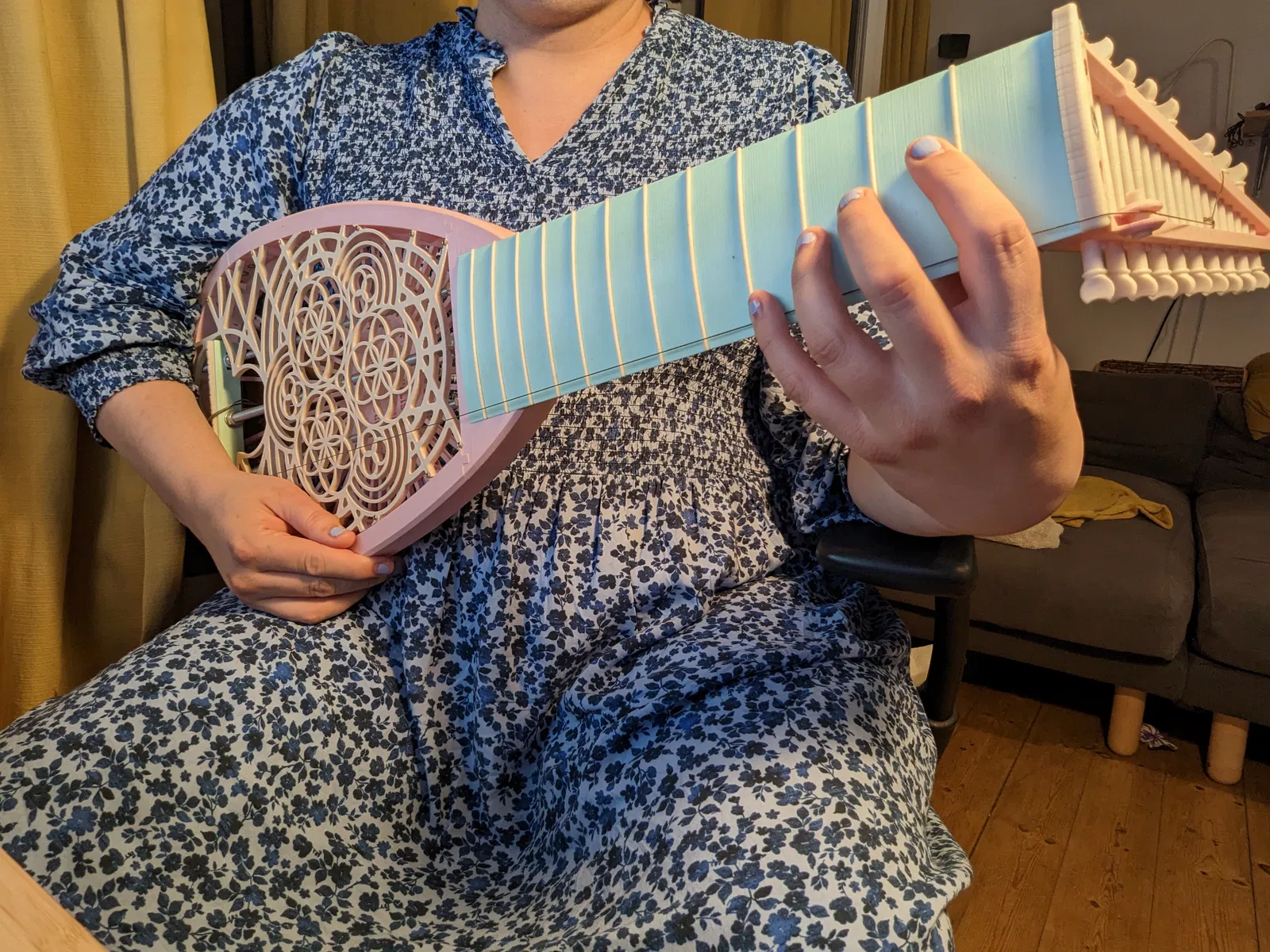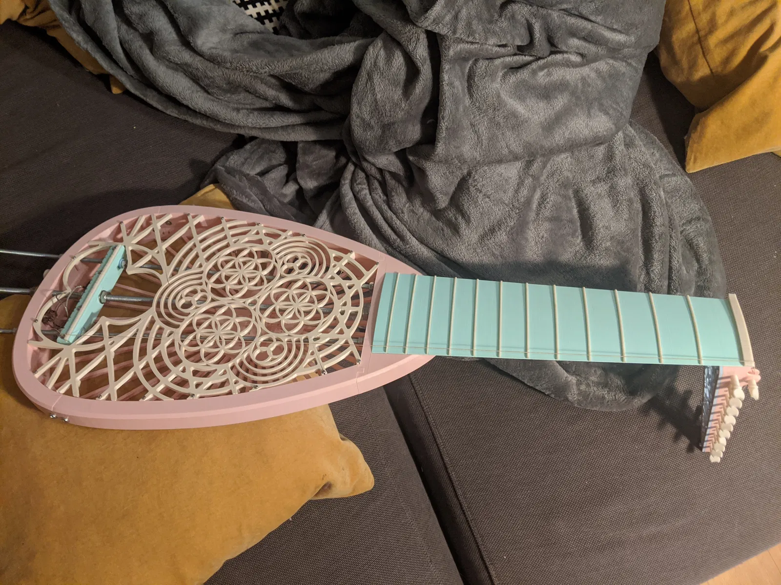 Là một người làm đàn, mình luôn yêu thích việc hiện đại hóa các nhạc cụ cổ điển và đã từng chế tạo vài chiếc đàn lute điện. Đây là mẫu đầu tiên mình thiết kế để in 3D. Bản in thử nghiệm đầu tiên của mình sử dụng nhựa PLA, không may là nó bị uốn cong quá mức nên không đảm bảo chất lượng chơi tốt, nhưng nếu bạn dùng vật liệu cứng cáp hơn cùng các thanh đỡ chắc chắn thì có lẽ sẽ ổn hơn.