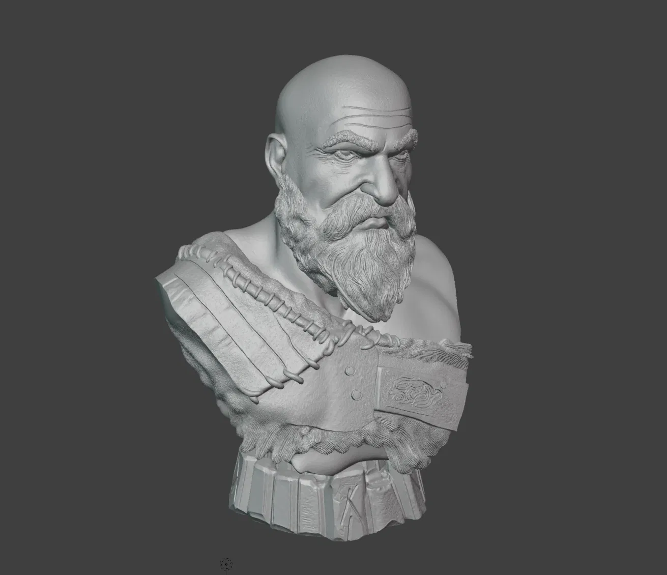 Đây là mô hình 3D cực kỳ chi tiết của Kratos, nhân vật chính huyền thoại trong loạt game God of War. Tượng bán thân này khắc họa phiên bản Kratos hiện đại với bộ râu đặc trưng, thần thái dữ dằn cùng bộ giáp sờn cũ đầy ấn tượng, bao gồm cả những chi tiết tinh xảo như biểu tượng cổ ngữ trên miếng giáp vai.