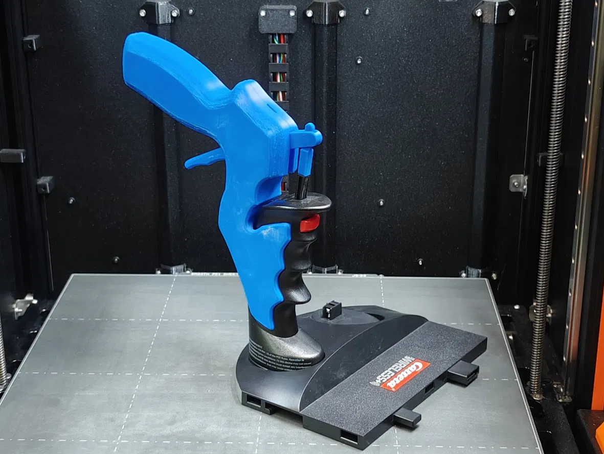 Lưu ý: Hai nửa tay cầm nên được in với mật độ thấp, hoặc sử dụng tính năng support/lightning infill để giảm trọng lượng, tránh việc tay cầm bị đổ khi đặt xuống. Bạn có thể in bề mặt ngoài mà không cần support, nhưng các đường cong có thể sẽ không được mượt mà lắm. Nếu in trên bề mặt trong, bạn sẽ cần thêm support cho khu vực cò bấm và các tấm hông. Nhược điểm của cách này là các bề mặt có support sẽ không được sạch đẹp trừ khi bạn dùng máy in cao cấp hỗ trợ support tan trong nước.