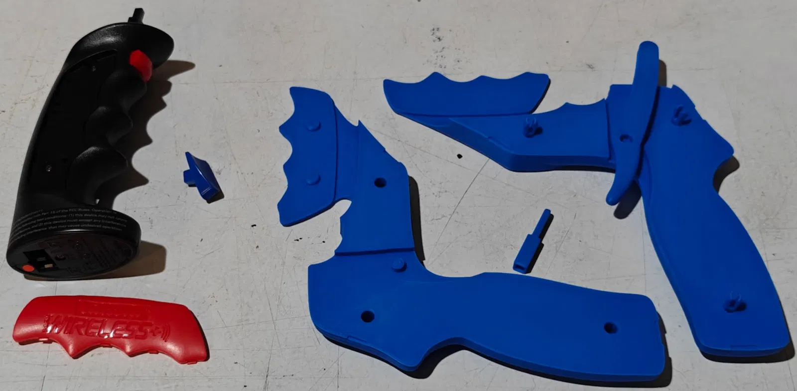 - Xác nhận adapter Wireless+ dùng tốt với các tay cầm hồng ngoại Wireless cũ (xem ảnh). Người dùng có thể cần nghiêng tay cầm để hướng mắt hồng ngoại về phía tháp nhận tín hiệu. Liên hệ nếu bạn cần thiết kế lại để cầm thoải mái hơn. Hiện tại, chỉ có ốc vít trên cùng là có thể dùng để giữ tay cầm.