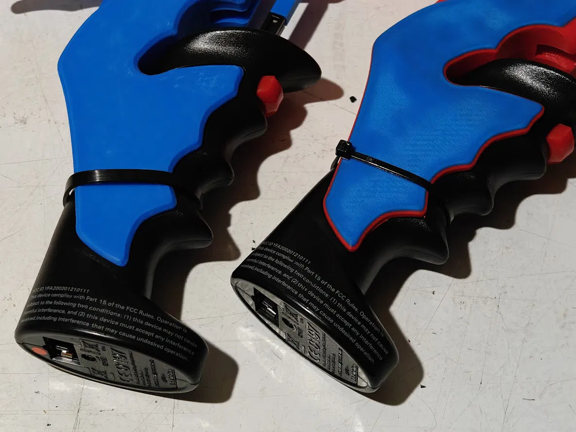 Nên bôi thêm một chút mỡ bôi trơn an toàn cho nhựa, chẳng hạn như silicone SuperLube, vào các bề mặt tiếp xúc như khu vực cò bấm. Việc này ít nhất sẽ giúp giảm tiếng kêu cọt kẹt. Ngoài ra, tùy vào chất lượng bản in, nếu tay cầm chưa được giữ chặt, bạn chỉ cần dùng dây chun hoặc dây rút nhựa quấn quanh “đôi cánh” và tay cầm là được. Xem ảnh cuối để biết ví dụ. Ngoài ra còn có phiên bản tay cầm có lỗ bắt vít để bạn dùng ốc gốc cố định tay cầm vào adapter chắc chắn hơn.
