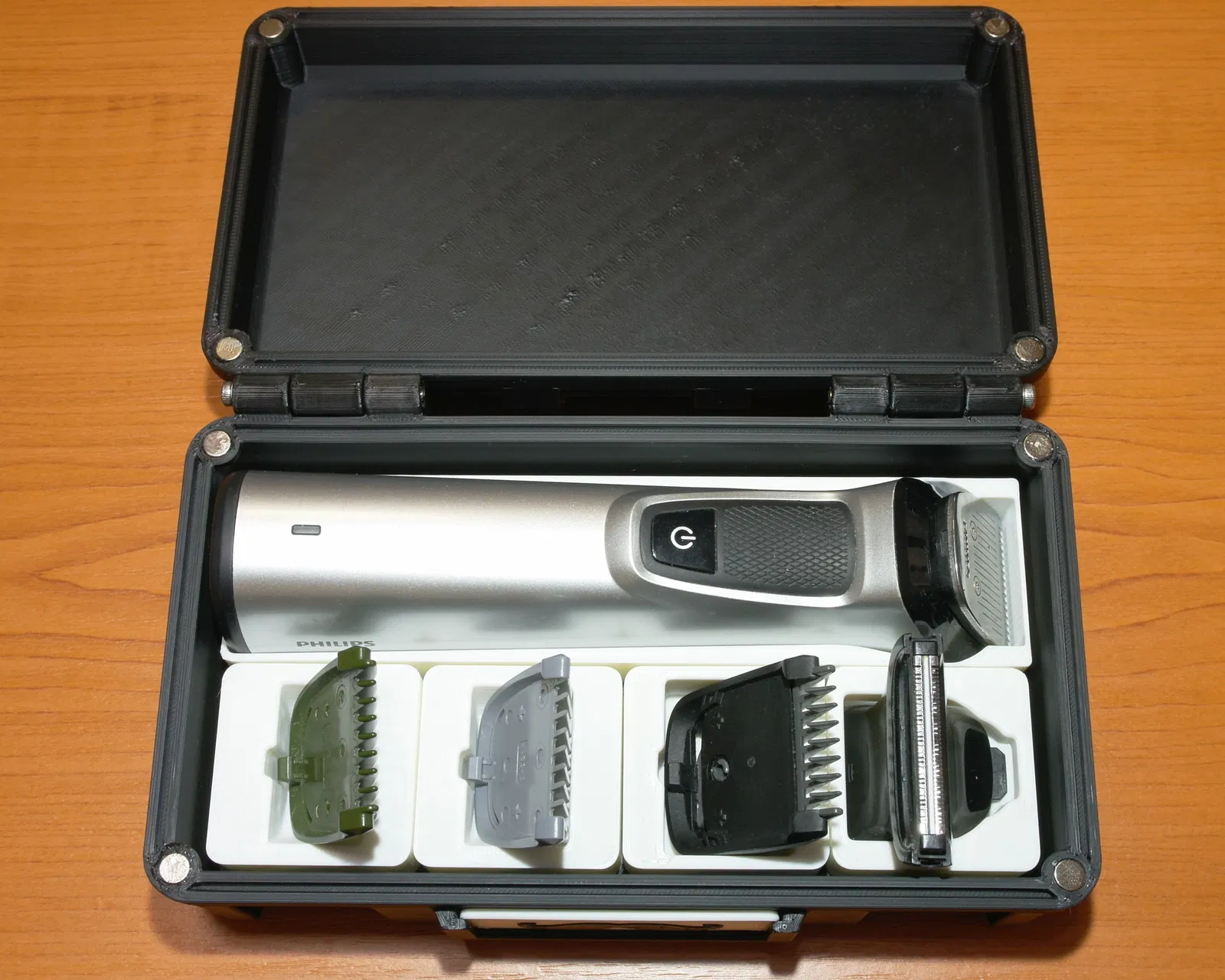 Mẫu này được thiết kế dành riêng cho Philips MultiGroom 7000 (MG7720), nhưng bạn cũng có thể tùy chỉnh các khay bên trong cho bất kỳ model nào khác.