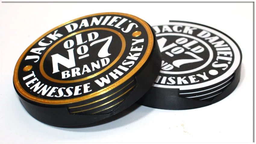 Mẫu đế lót ly Jack Daniel's được thiết kế bằng Photoshop. Sản phẩm in nổi bật, phù hợp cho những người yêu thích phong cách Whiskey. Lưu ý cần thay đổi sợi nhựa nếu in bằng máy đơn màu.