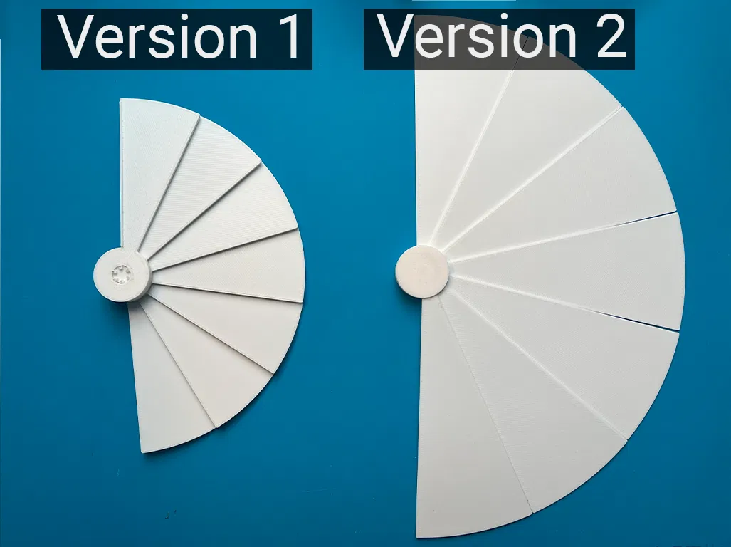 Phiên bản mới này sử dụng phương pháp tạo ngàm mới (để khóa các cánh quạt) giúp in nhanh và dễ dàng hơn do được giữ ở dạng "2D", phần ngàm được chuyển vào lõi. Hiện tại, lõi gồm 2 phần với một nắp vặn ren in 3D. Mặc dù vẫn cần cải tiến thêm, nhưng mình đã lắp ráp hoàn chỉnh như trong ảnh. Sắp tới mình sẽ làm thêm một phiên bản lõi/trục sử dụng ốc vít để lắp ráp đơn giản hơn.