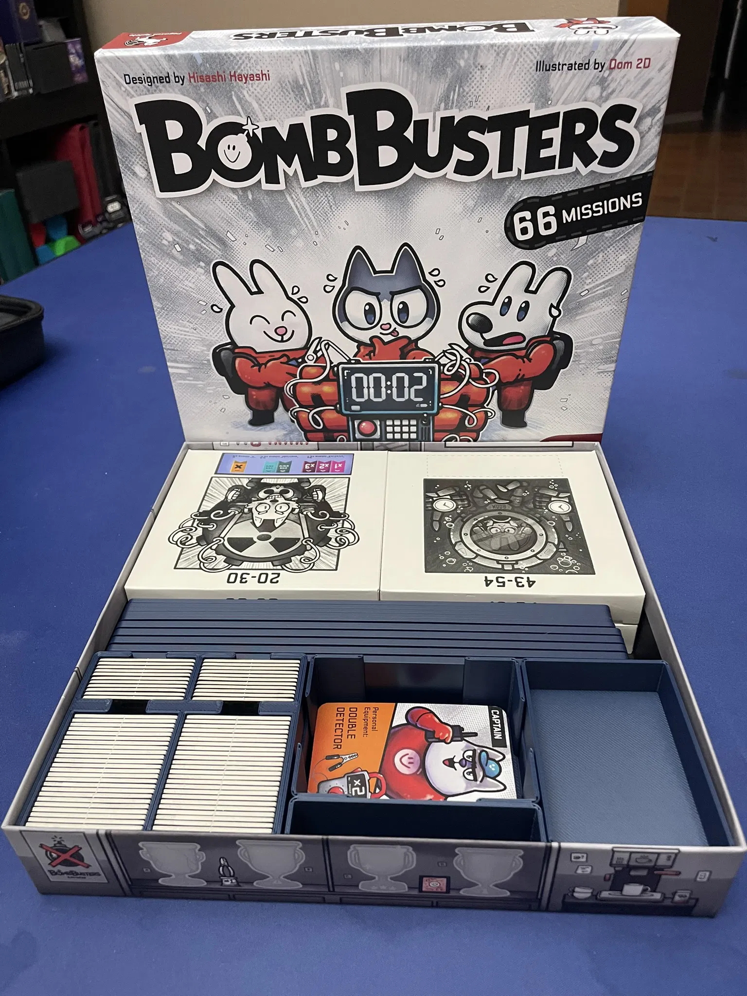 Bộ insert và khay tổ chức chuyên dụng cho game Bomb Busters. Các khay được thiết kế tối ưu, có thể dùng thay thế khay gốc, hỗ trợ bọc bài và giúp việc setup game nhanh chóng hơn. Tương thích với kiểu lưu trữ đứng.