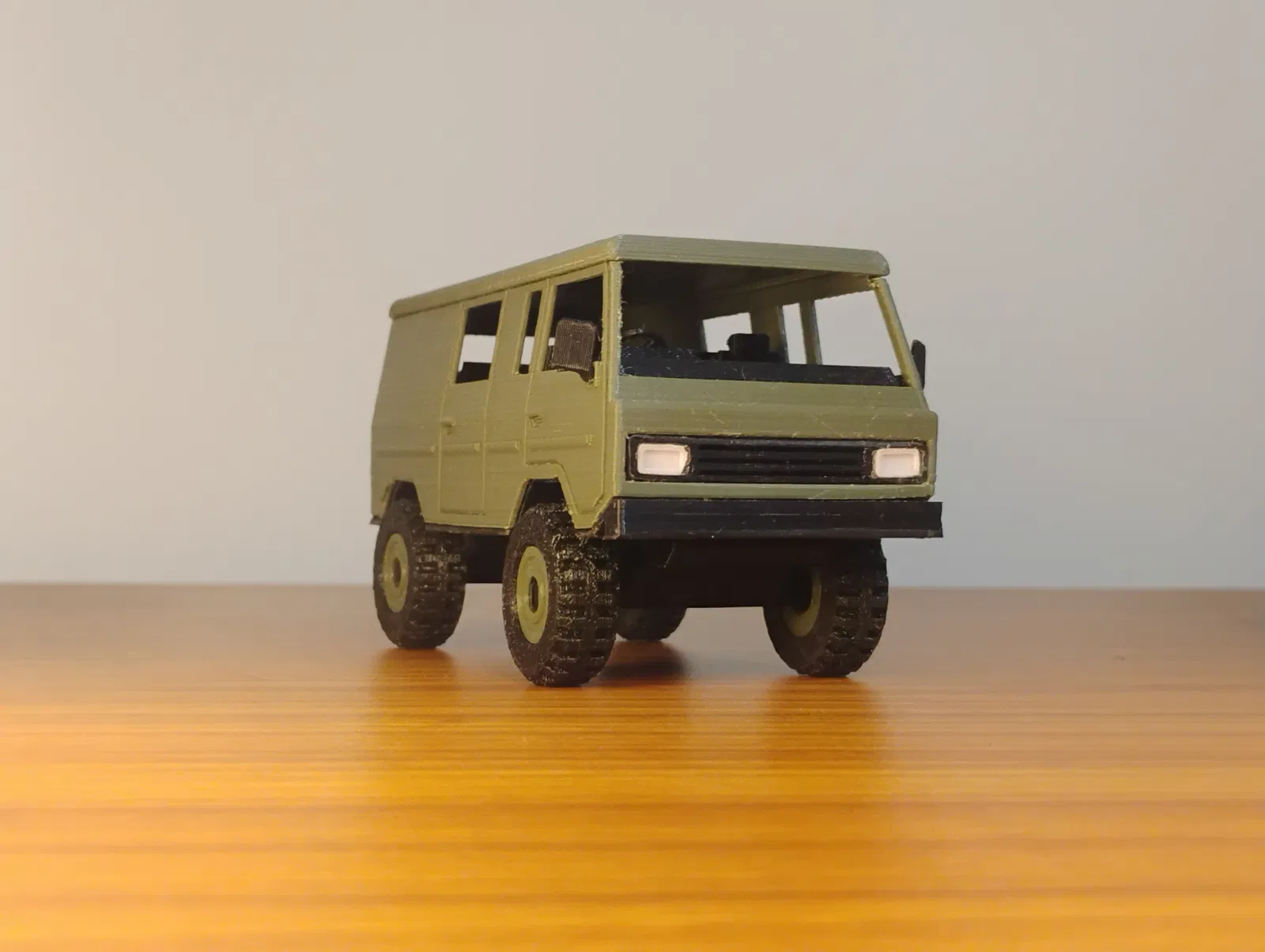 Giới thiệu: Đây là mô hình xe van địa hình in 3D theo tỷ lệ, lấy cảm hứng từ chiếc Volvo C303 huyền thoại – một "chiến mã" quân sự nổi tiếng với thiết kế hầm hố và khả năng chinh phục mọi địa hình. Được thiết kế với các đường nét tinh tế và dễ lắp ráp, mô hình này rất thích hợp để trưng bày, làm sa bàn hoặc bổ sung vào bộ sưu tập các loại xe quân sự và cổ điển của bạn. ### Danh sách linh kiện: Hãy in các bộ phận theo danh sách dưới đây. Sử dụng đúng màu sắc khuyến nghị để có kết quả tốt nhất. | Tên bộ phận | Màu sắc | Số lượng | | :--- | :--- | :--- | | Trục (Axle) | Đen | 2 | | Cabin | (Tùy chọn) | 1 | | Khung gầm (Chassis) | Đen | 1 | | Sàn xe (Floor) | Đen | 1 | | Lưới tản nhiệt (Grill) | Đen | 1 | | Đèn pha (Head Light) | Trắng | 2 | | Gương chiếu hậu phải (R) | Đen | 1 | | Gương chiếu hậu trái (L) | Đen | 1 | | Vành xe (Rim/Rim for TPE Tire) | (Tùy chọn) | 5 | | Mái xe (Roof) | (Tùy chọn) | 1 | | Giá đỡ lốp dự phòng | Đen | 1 | | Vô lăng | Đen | 1 | | Đèn hậu (Tail Light) | Đỏ | 2 | | Lốp xe (Tire/TPE Tire) | Đen | 5 | ### Quy trình in: Hãy đặt các bộ phận trong phần mềm slicer theo hướng dẫn hiển thị trong các hình dưới đây. Việc đặt đúng hướng in rất quan trọng để tránh phải dùng thêm vật liệu hỗ trợ (support). ##### Các bộ phận có màu: