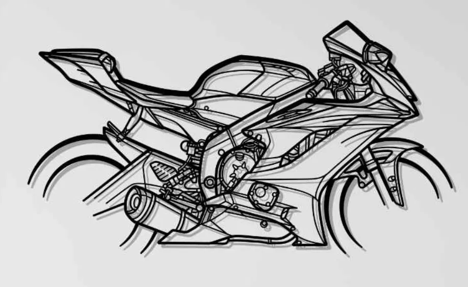 Nếu bạn là một tín đồ đam mê tốc độ và yêu thích dòng xe phân khối lớn huyền thoại, thì mẫu trang trí tường (wall art) chiếc Yamaha YZF-R6 đời 2018 này chính là món đồ bạn đang tìm kiếm. Với thiết kế dạng đường nét tối giản (silhouette), mô hình này tái hiện lại những đường cong sắc sảo và dáng vẻ thể thao đặc trưng của dòng siêu mô tô này một cách vô cùng tinh tế. Sản phẩm không chỉ là một vật phẩm trang trí đơn thuần mà còn là điểm nhấn cá tính, khẳng định đẳng cấp cho không gian sống, phòng làm việc hay góc trưng bày của những người chơi xe.