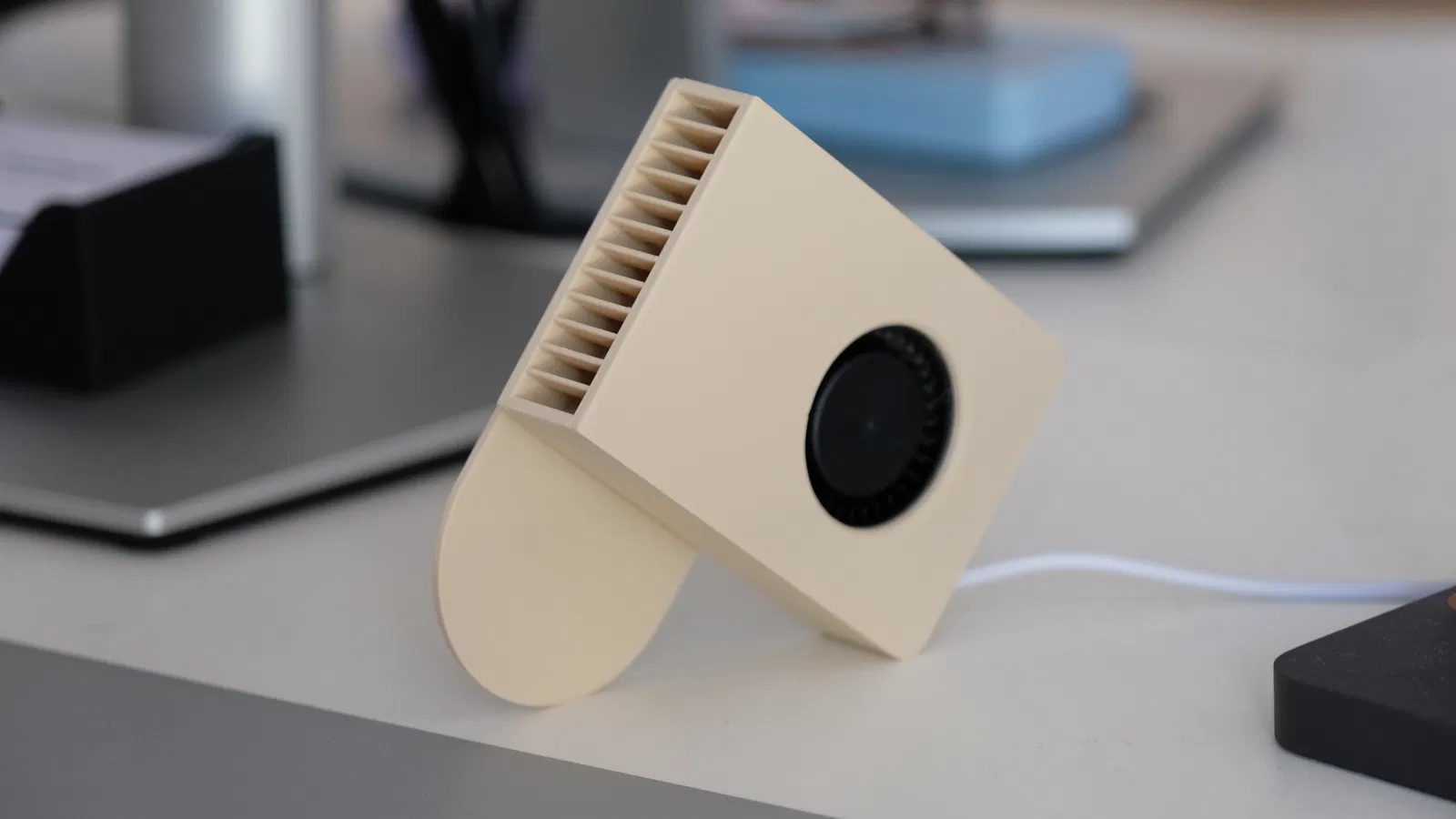Mình đã thiết kế cái vỏ ngoài này cho quạt radial của Prusa để điều hướng luồng gió, giúp bạn tận dụng nó như một chiếc quạt cầm tay. Mình có thêm một cái kẹp để bạn có thể gài vào túi áo và hướng luồng gió trực tiếp vào trong áo. Phần kẹp này cũng có thể xoay để đặt trên bàn làm việc. Đây chưa phải là thiết kế hoàn hảo nhất đâu, mình sẽ sớm cập nhật lại phần kẹp để tiện dụng hơn cho cả hai mục đích này.