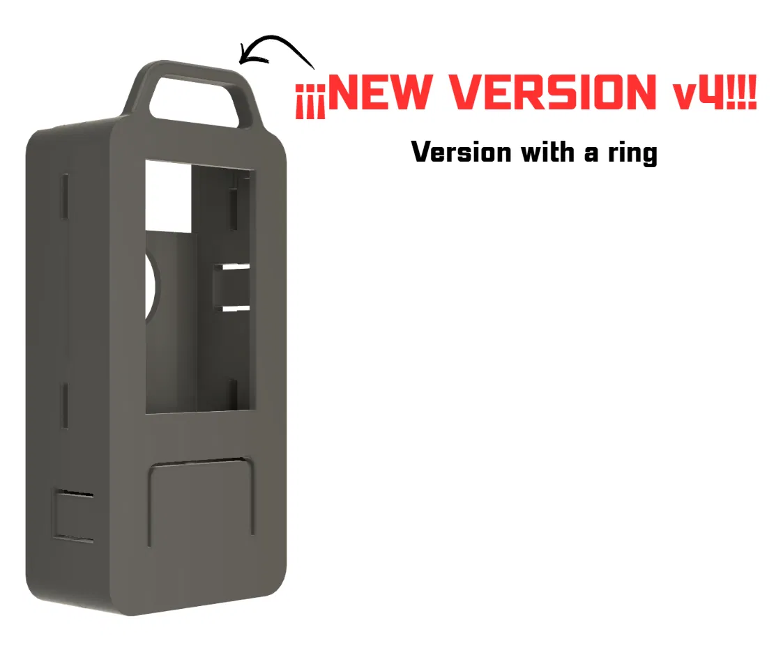 Bộ nắp thay thế tùy chỉnh cho M5 Stick C Plus 2. Phiên bản V4 cải tiến cơ chế vặn ốc, tối ưu nút bấm và thêm vòng móc dây đeo. Hướng dẫn chi tiết cách in và tháo lắp.