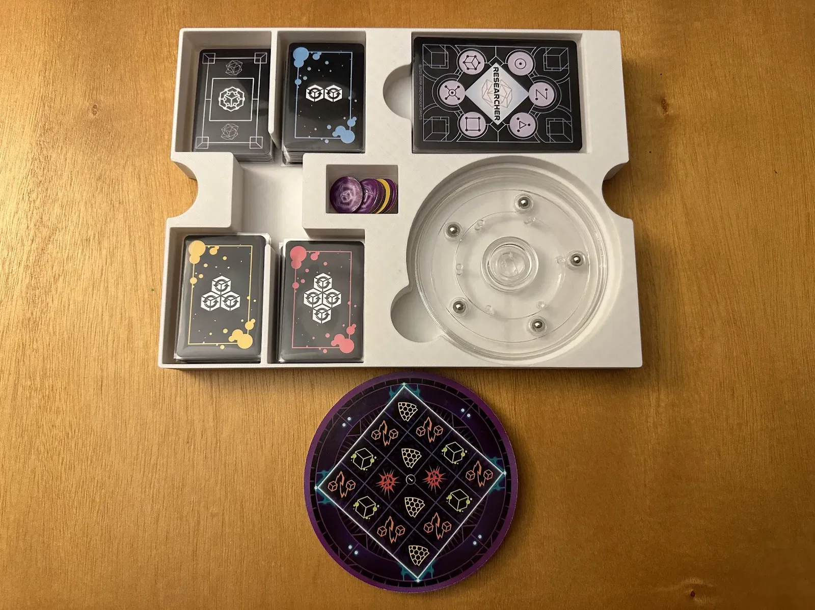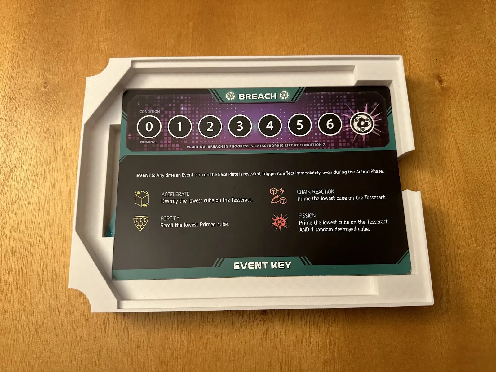 Đây là một bộ chèn cho trò chơi board game Tesseract: một trò chơi thao tác xúc xắc đa chiều. Bộ chèn Stock không có chỗ cho cả hai bộ xúc xắc, vì vậy tôi chủ yếu phát triển cái này để tận dụng không gian hộp rộng rãi. Bạn sẽ cần in hai khay xúc xắc, mà tôi đã làm dày hơn do trọng lượng của xúc xắc hợp kim. Bộ đệm dưới cùng nên được in với nền/platform được căn chỉnh với bàn in của bạn, sau đó lật ngược lại trong hộp để cung cấp thêm hỗ trợ cho lớp tiếp theo.