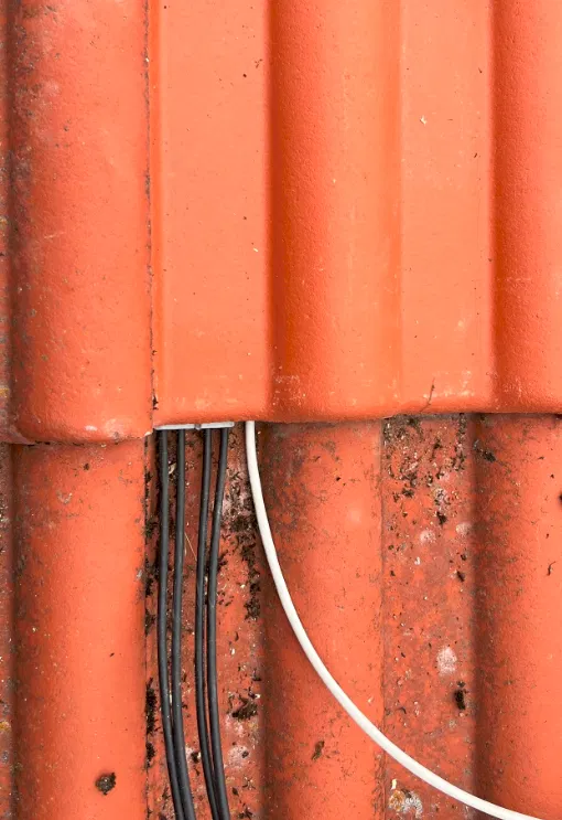 Phần này là tùy chọn, không bắt buộc nếu bên dưới lớp ngói không có tấm lót, nó giúp dẫn cáp xuyên qua lớp lót một cách khoa học.