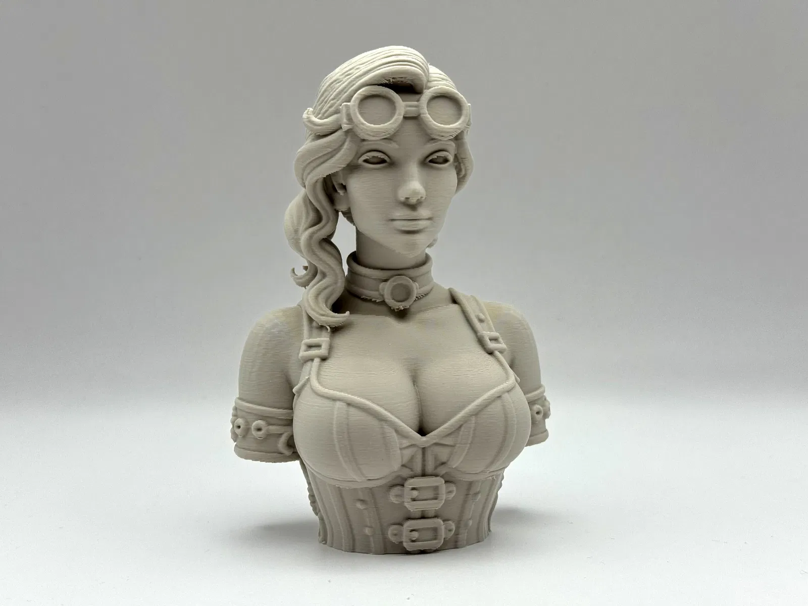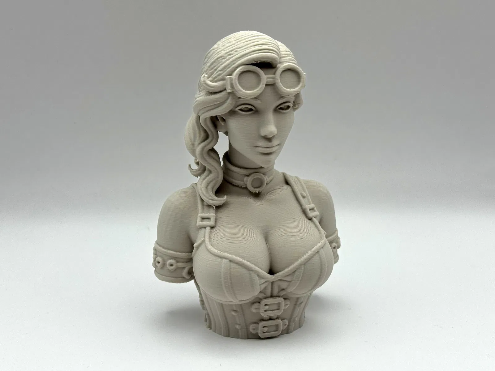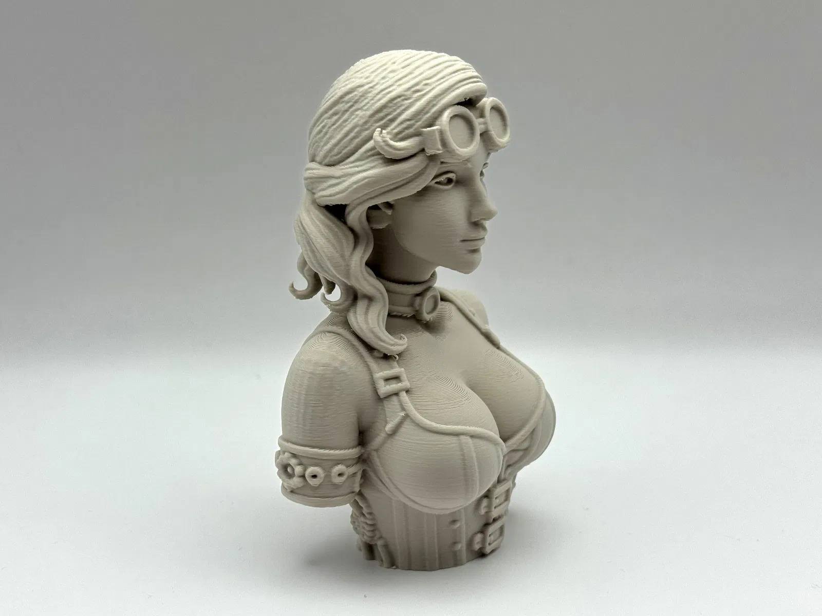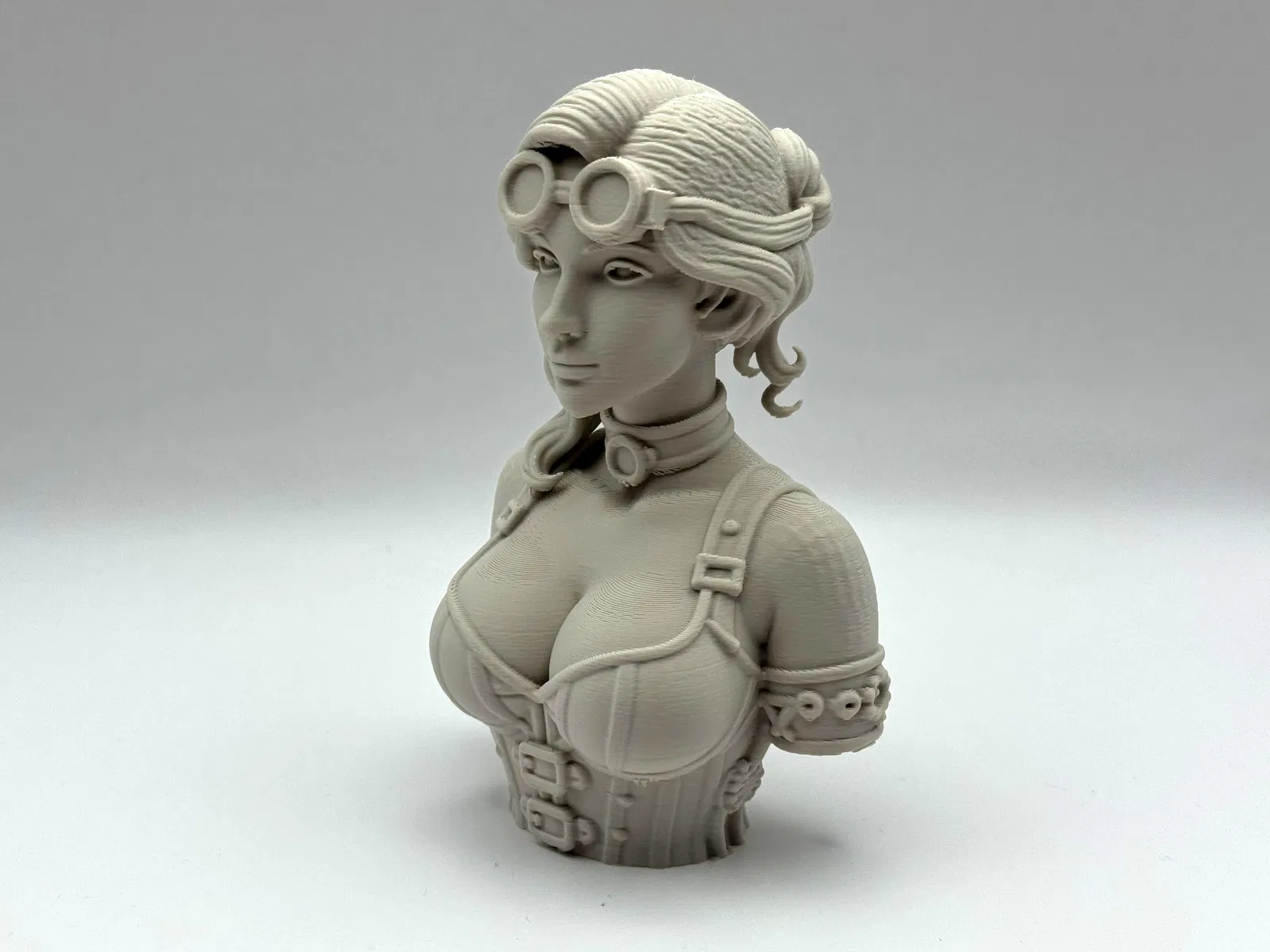 Khám phá vẻ đẹp pha trộn giữa sự thanh lịch và phong cách cơ khí retro-futurism với tượng bán thân nữ Steampunk này. Một tác phẩm nghệ thuật chi tiết, hoàn hảo để trang trí bàn làm việc hoặc không gian sống của bạn. Hỗ trợ in ấn dễ dàng.