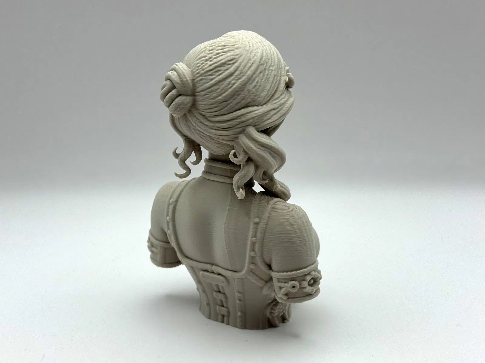 Một sự kết hợp táo bạo giữa nét thanh lịch và máy móc, tượng bán thân nữ Steampunk này thể hiện tinh thần retro-futurism đầy ấn tượng. Với chi tiết kính bảo hộ, mái tóc bồng bềnh và chiếc corset điểm xuyết các bánh răng, cô ấy vừa là một nhà phát minh, vừa là một nhà thám hiểm và là một biểu tượng đầy cá tính.