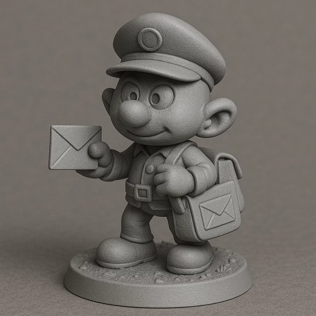 Chú Xì Trum làm nhân viên bưu điện: tay cầm thư và túi đeo chéo qua vai. Mô hình này không chỉ dễ thương mà còn rất độc đáo – cực kỳ hợp để trang trí trong tiểu cảnh diorama hoặc làm quà tặng. Được in bằng nhựa PLA, cao khoảng 8cm, với các chi tiết tinh xảo như đồng phục và chiếc mũ đặc trưng. Chắc chắn sẽ mang lại không khí vui tươi cho ngôi làng, và tất nhiên là giao thư đến tận nơi!