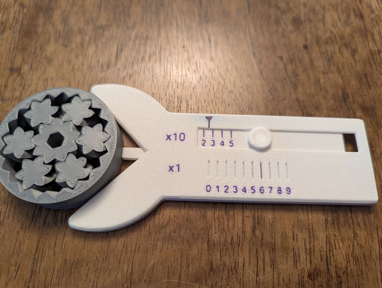 Một loại thước đo bán kính sử dụng hiệu ứng moire để khuếch đại chuyển động, giúp bạn đọc trực tiếp kết quả đo trên thang chia vernier một cách dễ dàng và thú vị khi in 3D.