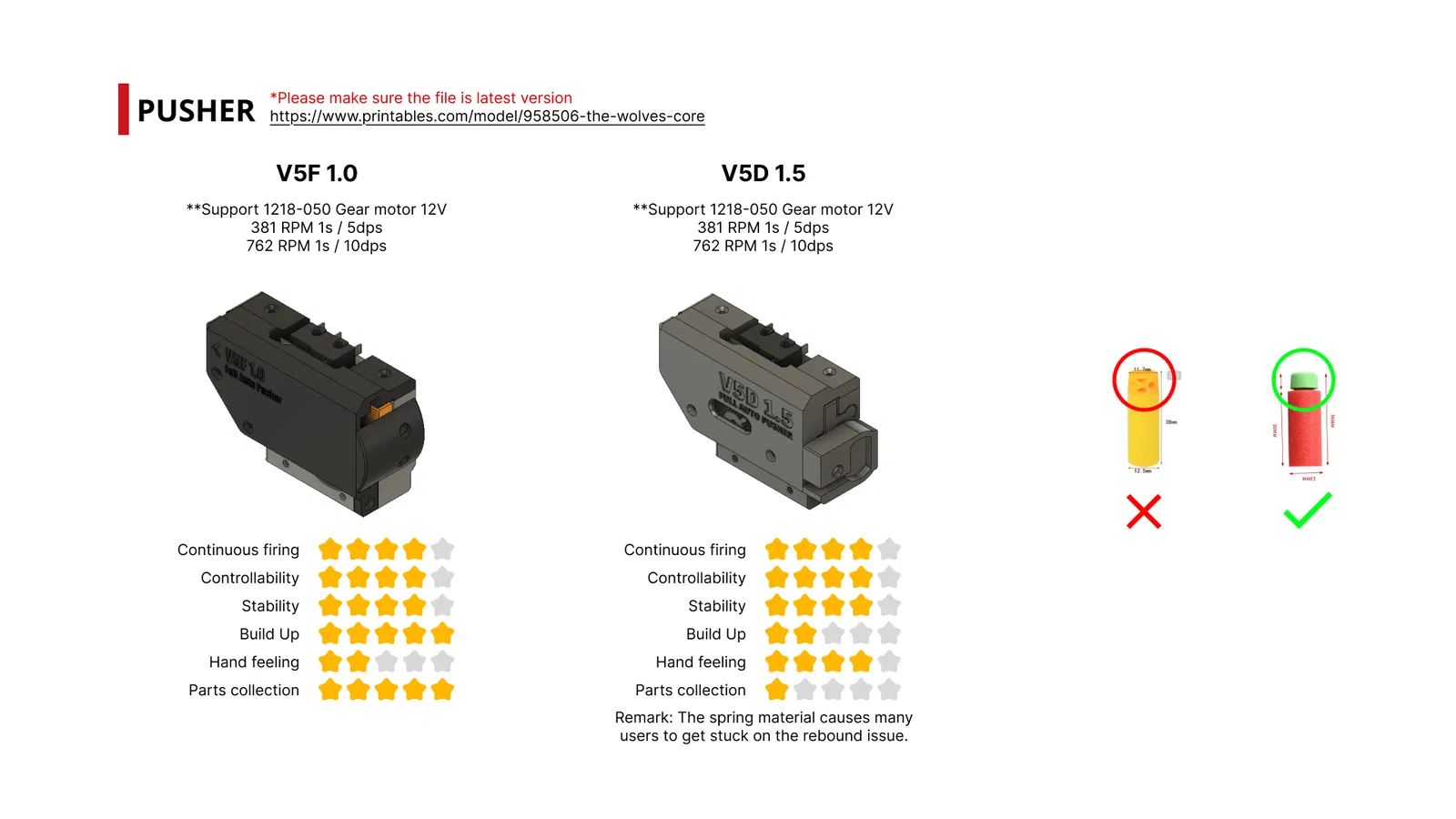 20260301: motor_shell_01_1.5mm.stl và motor_shell_01_1mm.stl (Phù hợp hơn cho các loại động cơ nam châm mạnh) 20260210: Full Auto pusher V5D 1.5.step, Full Auto pusher V5F 1.0.step, The Wolves_Type_A_32.5.step, The Wolves_Type_B_32.5.step 20260209: Pusher_V5F_1.0 20250622: Core Type A B: Dual stage, cập nhật phiên bản Single stage, cập nhật hướng dẫn trên Figma 20250110: Core Type A: core C to C 32.5, 31.5 và 30.5 20241209: Core Type B: core C to C 31.5 và 30.5, cập nhật phần cứng pusher 1.5 20241114: Pusher V5D 1.5, Core Type B 20241029: Pusher_V5D_body_ex_5mm.stl, Pusher_V5D_body_ex_9.5mm.stl 20241028: Sửa lỗi Pusher_V5D_firing pin_03.stl 20240822: Pusher_V5D_1.4 20240812: Core_TypeA_Body_32.5.stl