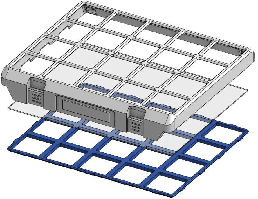 Hộp Gridfinity phiên bản cải tiến với thiết kế cửa sổ lắp ghép linh hoạt từ 0.1-10mm, không cần in print-in-place. Hỗ trợ tùy chỉnh tay cầm, chiều cao 4U/5U, độ dày nam châm và dễ dàng tùy biến kích thước qua Onshape.