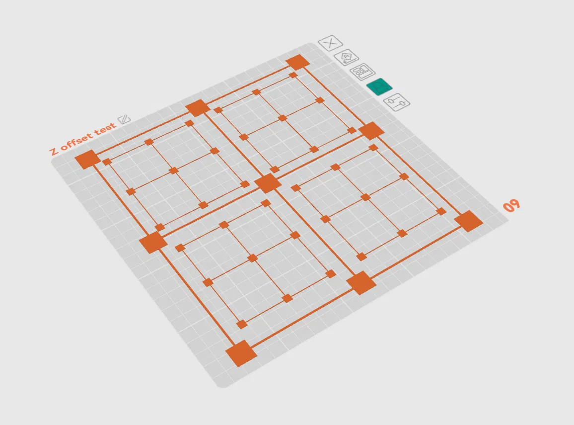 Khi thực hiện lệnh in, máy sẽ tạo ra các hình khối nhỏ được phân bổ đều trên bề mặt bàn. Dựa vào độ dày, độ bám dính và hình dạng của những khối này, anh em sẽ biết được máy đang in quá cao hay quá thấp, từ đó điều chỉnh lại thông số Z-offset sao cho phù hợp nhất. Đây là công cụ đắc lực, đặc biệt là khi anh em vừa mới tháo lắp bàn in hoặc thay đổi bề mặt in mới.