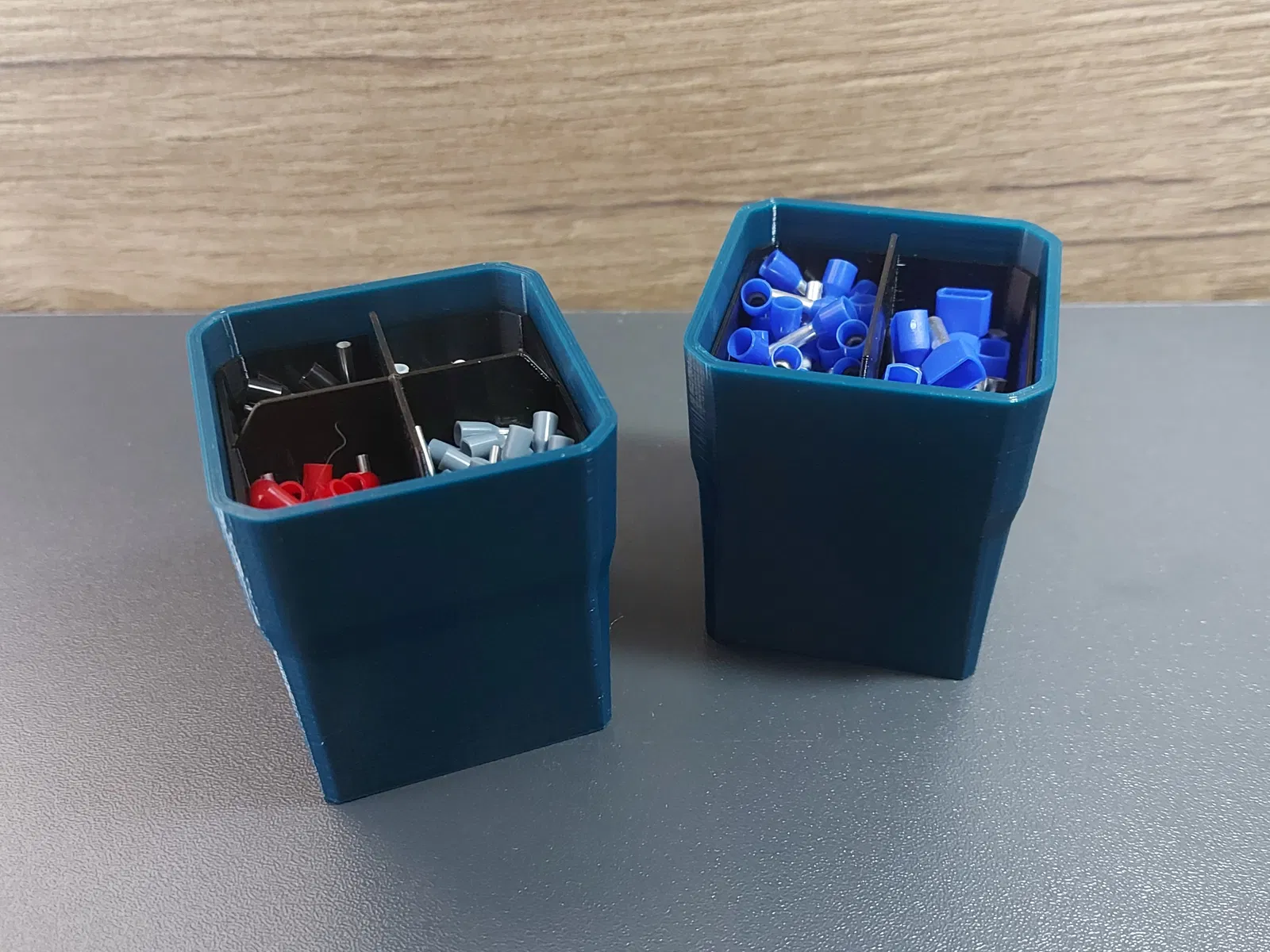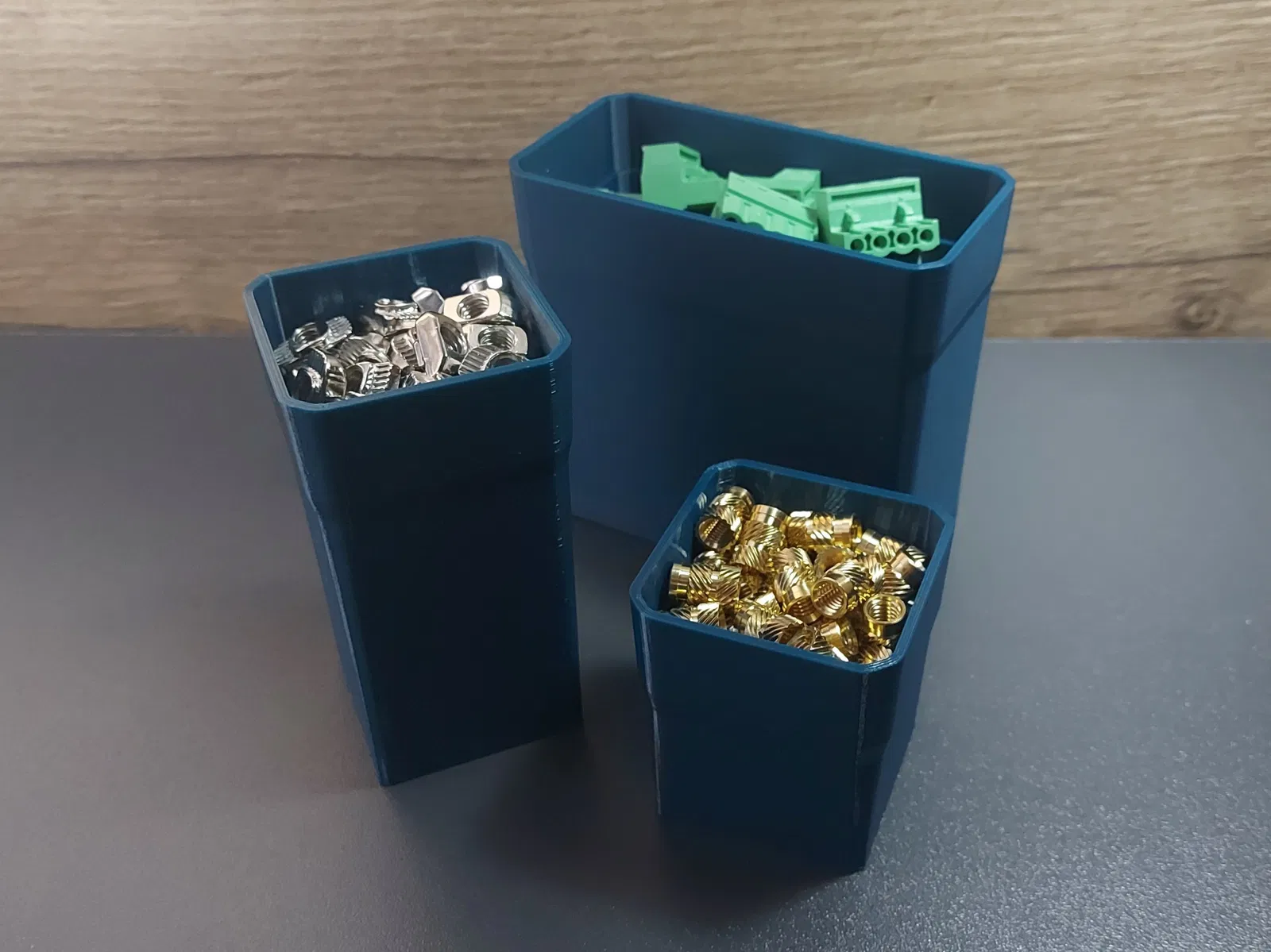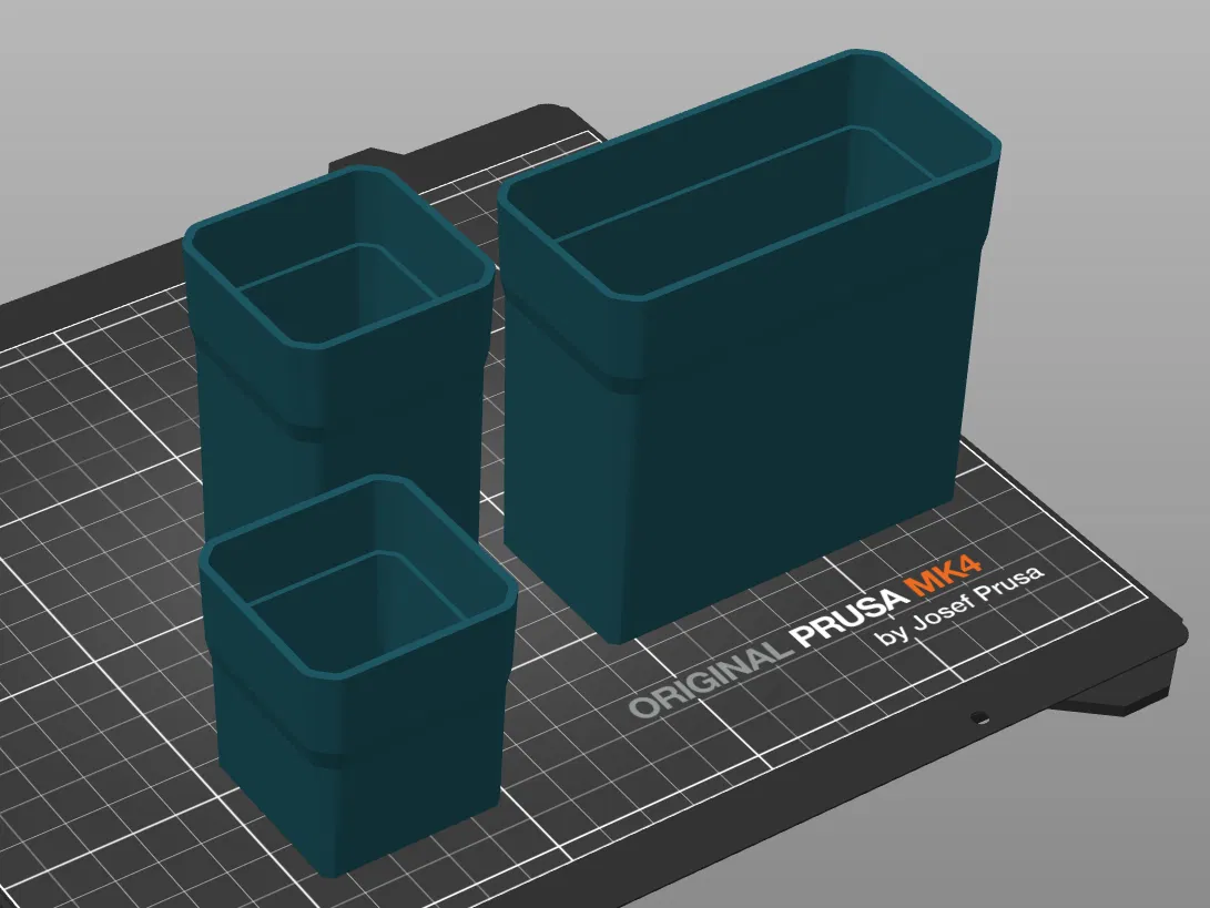 Về độ bám dính trên bàn in, các hộp này hơi khó in vì diện tích tiếp xúc với bàn in rất nhỏ. Mình khuyên bạn nên dùng thêm viền (brims) nếu gặp vấn đề về độ bám. Với mình, tấm PEI nhẵn có độ bám hơi quá cao, gây khó khăn khi tách bản in PETG sau khi in xong. Dùng PLA thì ổn hơn.