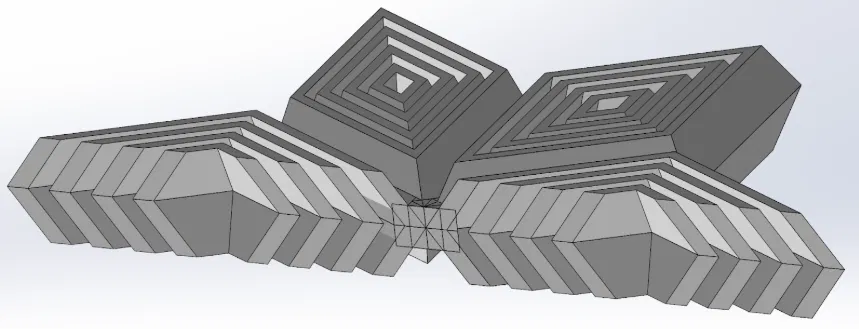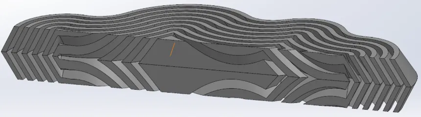 Sử dụng kiểu offset pattern, mình luân phiên giữa extruded cuts và boss extrudes để tạo ra các lớp nằm lồng vào trong nhau.