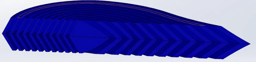 Sử dụng offset pattern làm hướng dẫn, mình tạo các lớp lồng vào nhau bằng các lệnh cut/boss extrude, tất cả đều ở góc 15 độ.