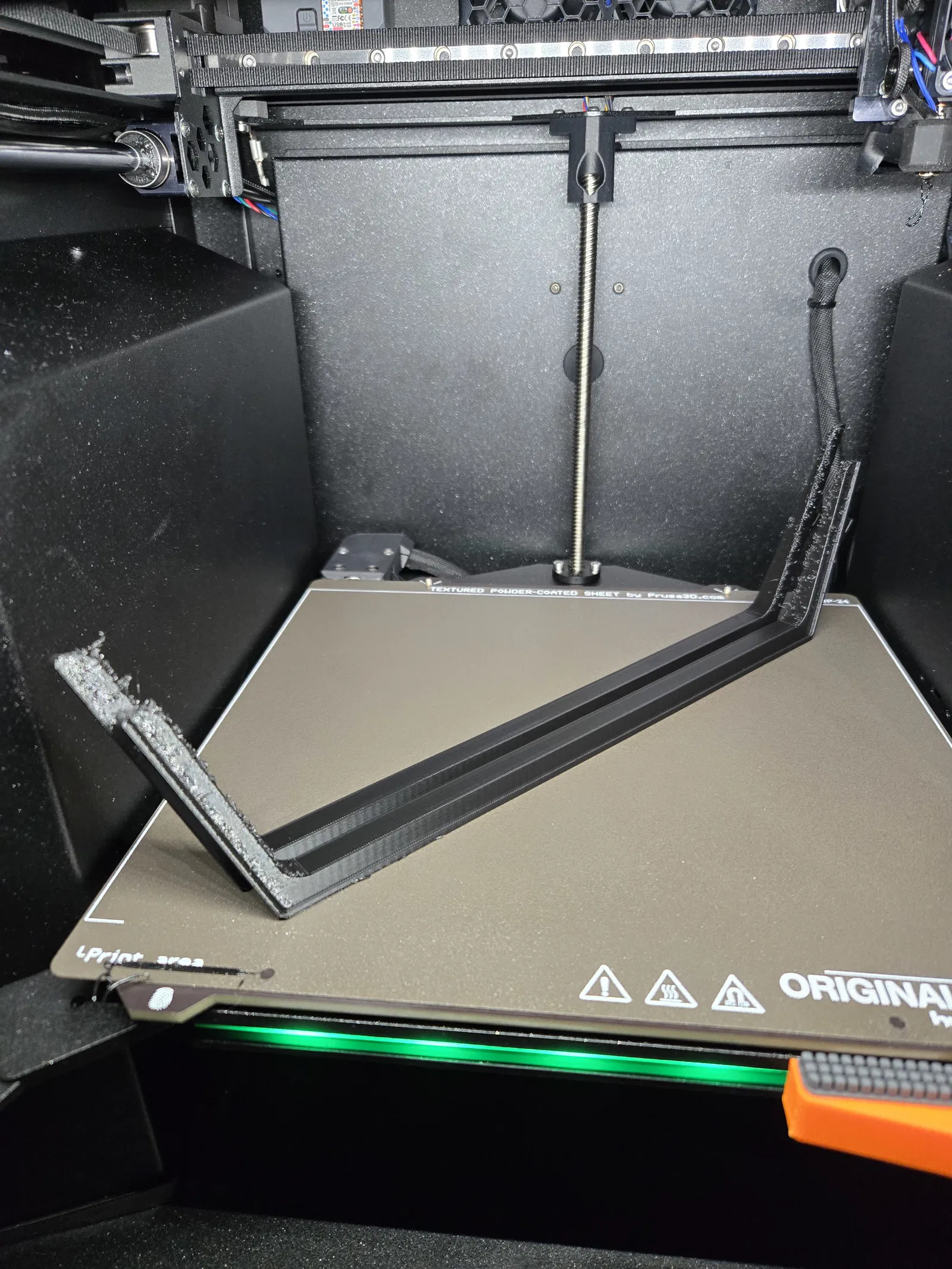 Bạn hãy tách các chi tiết ra, lật mặt sau xuống bàn in và xoay 45°. Trên máy CoreOne của mình, khi in bằng nhựa PCTG thì vẫn gần như không thể tránh khỏi hiện tượng bị kéo chỉ (stringing), nhưng không sao cả! Các phần bị kéo chỉ này sẽ nằm gọn bên dưới tấm ốp nên không hề bị lộ (thực tế thì một chút nhựa thừa còn giúp cố định vị trí của chúng tốt hơn).