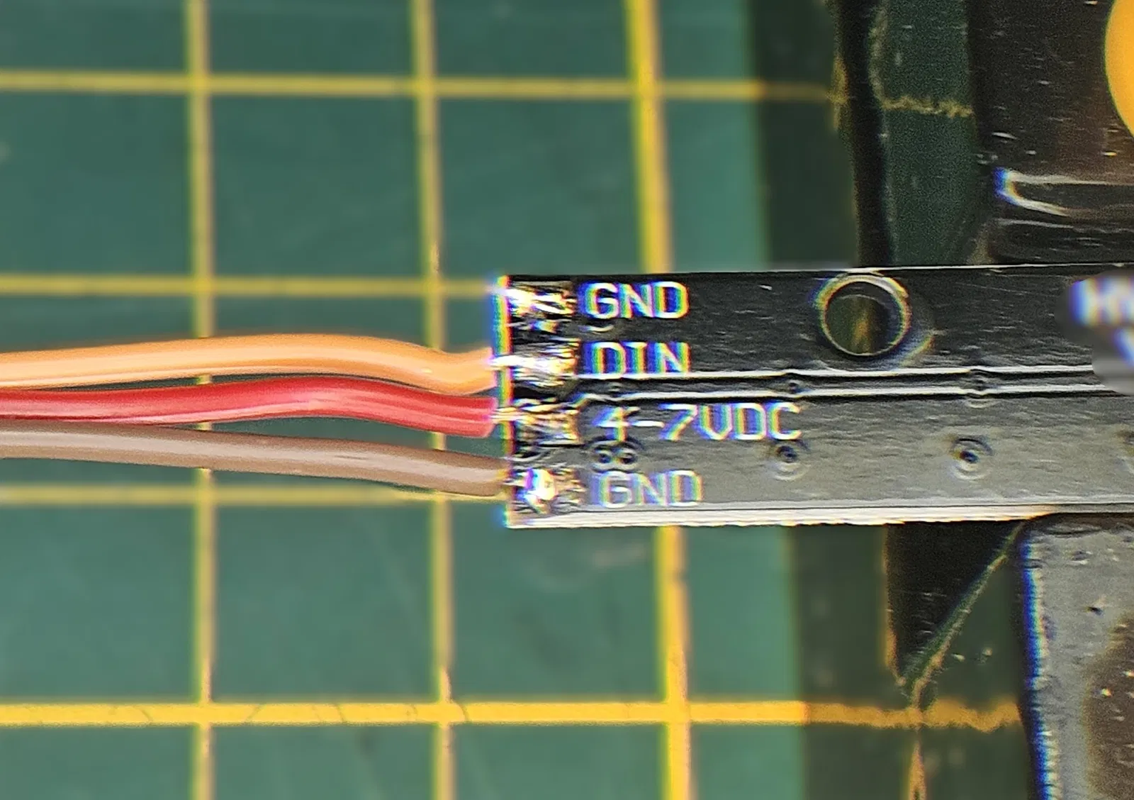 Cắt dây jumper ở một đầu và hàn vào thanh LED (GND, 5V, DIN).