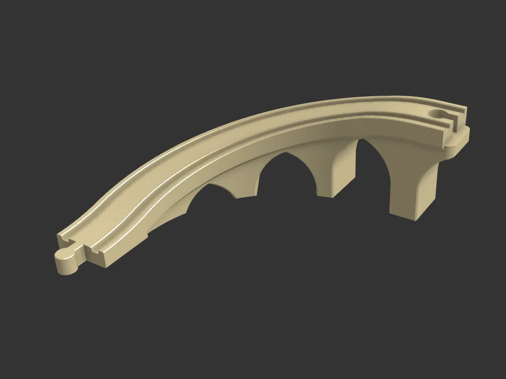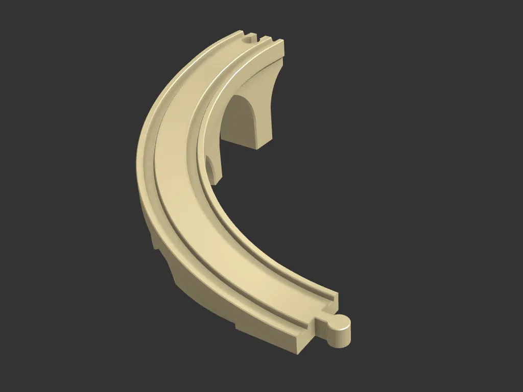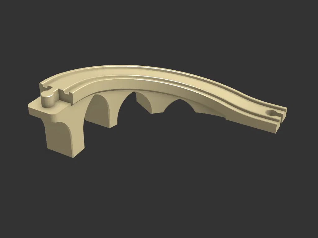 Đoạn đường dốc cầu 90 độ tương thích với đường ray xe lửa gỗ Brio/Ikea. Thiết kế thông minh cho phép in 3D không cần support, giúp việc chuyển hướng và thay đổi độ cao cho đoàn tàu trở nên dễ dàng và tiết kiệm không gian.