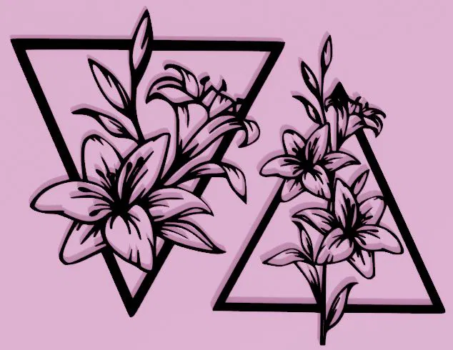 Mẫu thiết kế Kroon này là một lựa chọn tuyệt vời cho những ai yêu thích sự kết hợp giữa nét đẹp tự nhiên của hoa lily và hình khối hình học tối giản. Đây là một món đồ decor dạng 2D hoặc 2.5D được thiết kế tinh tế, làm nổi bật lên những đường nét uốn lượn của cánh hoa bên trong khung tam giác sắc sảo. Bạn có thể sử dụng sản phẩm này để làm quà tặng, vật phẩm trang trí treo tường hoặc gắn lên kệ sách, bàn làm việc để tạo thêm điểm nhấn nghệ thuật độc đáo cho không gian sống của mình.