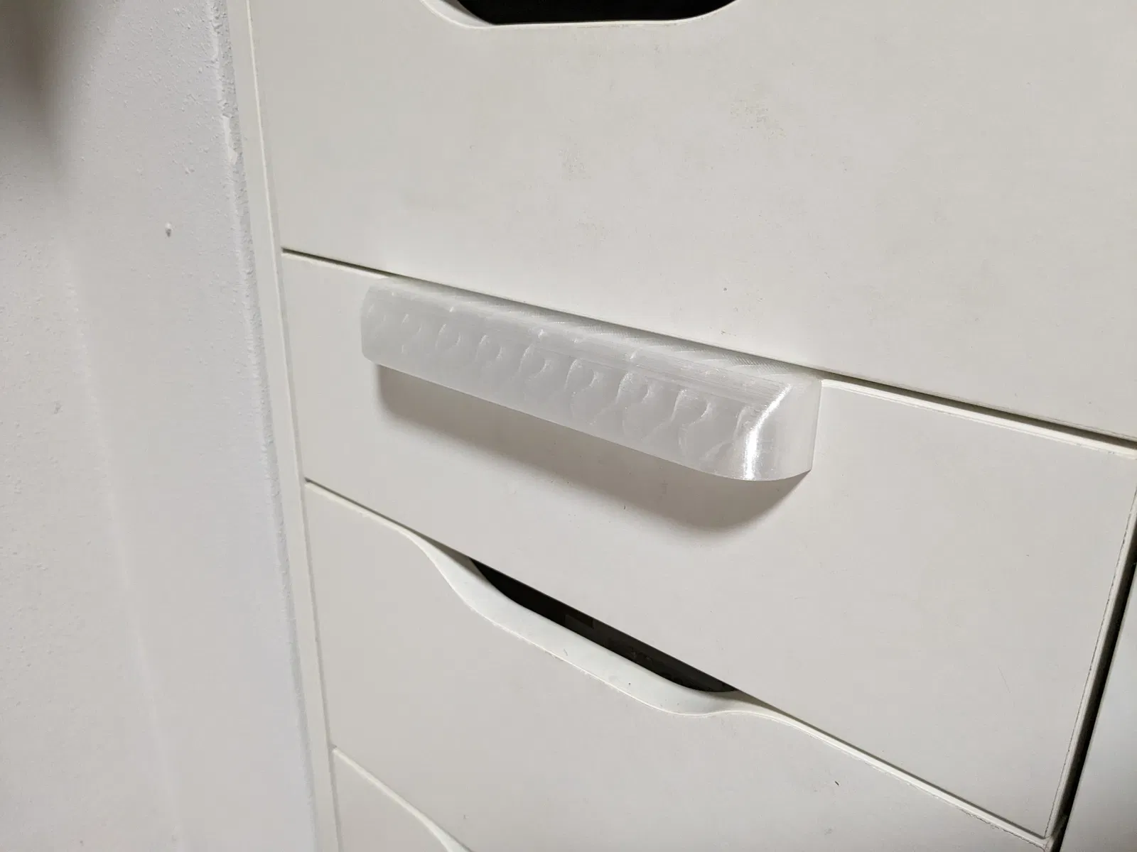 Do mẫu tay cầm cũ không còn vừa với dòng tủ Alex mới, mình đã phải điều chỉnh lại thiết kế. Mình cũng đã khoét rỗng phần giữa và làm mỏng phần mặt sau để tốn ít nhựa in hơn nữa.