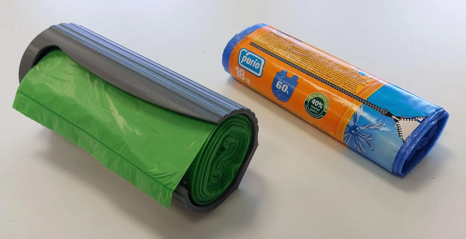 Vì không ưng ý với hàng trăm mẫu giá treo túi rác có sẵn, mình đã tự thiết kế riêng phiên bản này. Sản phẩm tương thích tốt với túi rác LIDL 35L và 60L, có tùy chọn bề mặt trơn hoặc vân ngang, dễ dàng lắp đặt bằng vít hoặc băng dính.